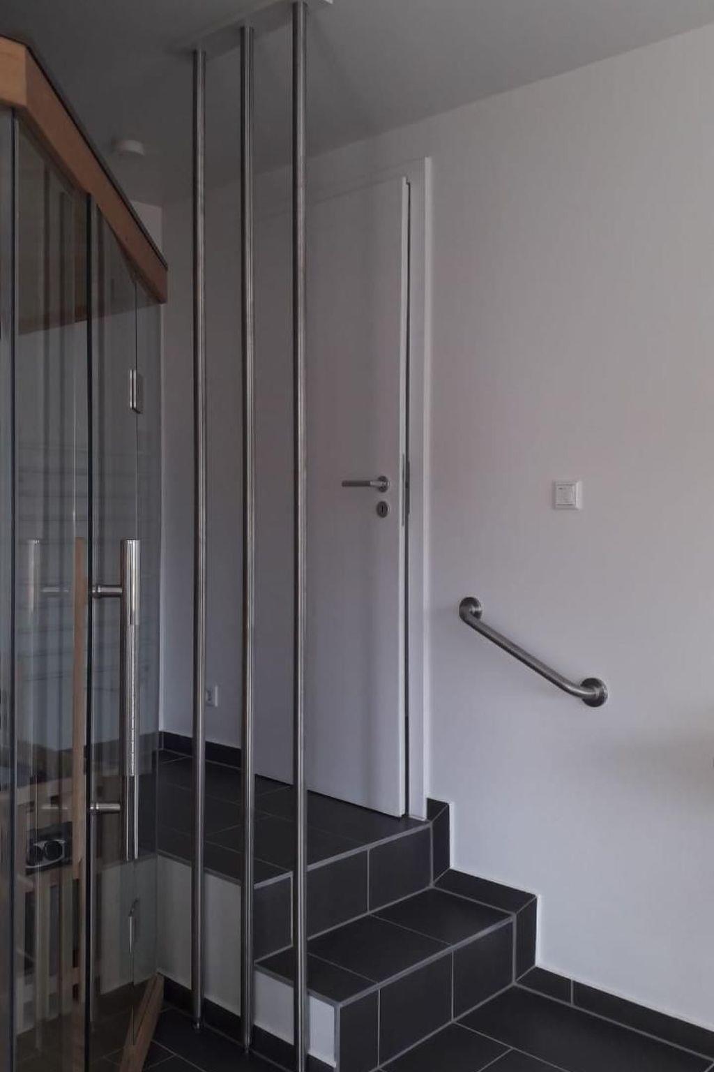 This beautiful villa is comfortably and lovingly furnished. Nothing is left to be desired here. The very well-equipped kitchen has a coffee machine with grinder so that you can make your coffee fresh every day. The cosy dining area offers you a view of the enchanting natural surroundings. Two living areas are at your disposal. On the ground floor, 3 cosy sofas and a large pull-out corner sofa on the gallery invite you to relax. 4 bedrooms with double beds offer space for families or couples of friends. The well-equipped kitchen includes a Magnifica coffee machine with grinder and a filter coffee machine. A kettle, toaster, mixer, dishwasher, oven etc. are also included. The furnished terraces with deckchairs, parasol and large table as well as lounge furniture invite you to linger. There is also a TV in the bedrooms.