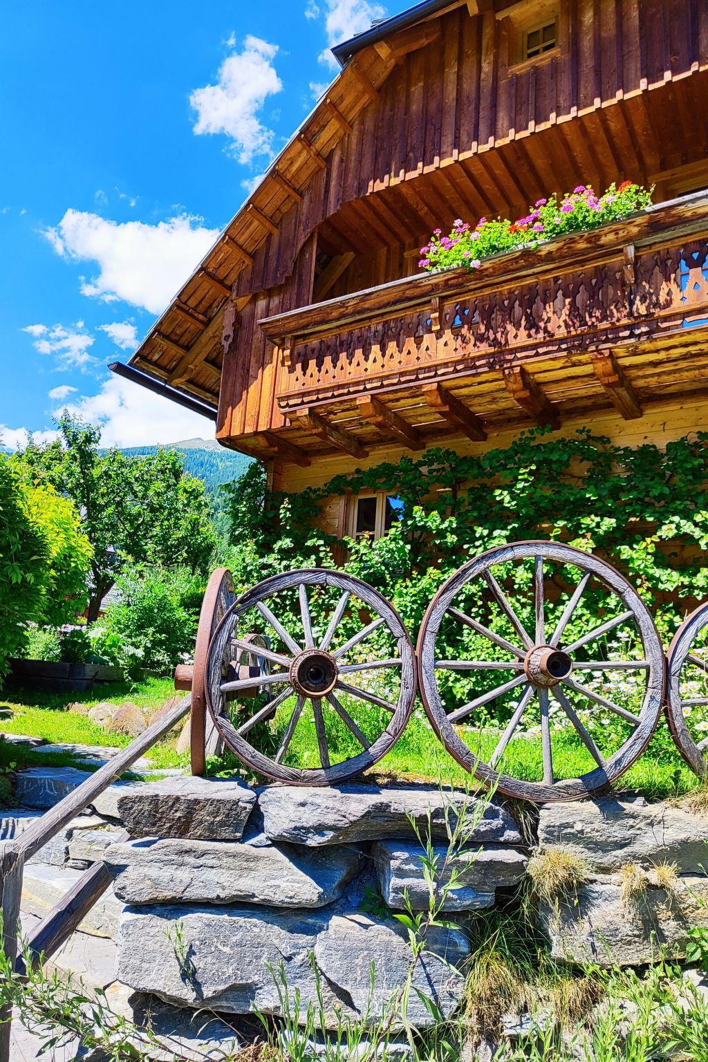 St. Michael: Individually designed chalets with great attention to detail! Traditional architecture made from high-quality natural materials surrounded by nature and peace and quiet to feel good! cosy, rustic, comfortable holiday village "st martin chalets". On the outskirts, 1 km from the centre of St. Michael, in a central, quiet, sunny position, 200 m from the edge of the forest, 300 m from the skiing area, 500 m from the river. For shared use: garden. Garden furniture, barbecue. In the house: WiFi, sauna, fitness room, sun terrace, washing machine. Bread roll service on request. Parking. Carport. E-charging station. Grocery 1 km, shopping centre 1 km, restaurant 300 m, bakery 1 km, pedestrian zone 1 km, bus stop 150 m, railway station 16 km, bathing lake 30 km. Golf course (18 hole) 1 km, walking paths from the house 200 m, cycle lane 700 m, ski lift 300 m, chair lift, ski bus stop 150 m, cross country ski track 700 m. Nearby attractions: Burg Mauterndorf, Burg Finstergrün, Schloss Moosham, Heimatmuseum Tamsweg, Adventurepark Katschberg, Outdoor- und Wasserpark. Well-known ski regions can easily be reached: Grosseck-Speiereck, Aineck-Katschberg, Obertauern. Hiking paths: Göriacher Hüttendorf, Weisspriachtal, Naturpark Riedingtal. Please note: the photograph shows a typical example. End of May to beginning of November: LUNGAU CARD included.