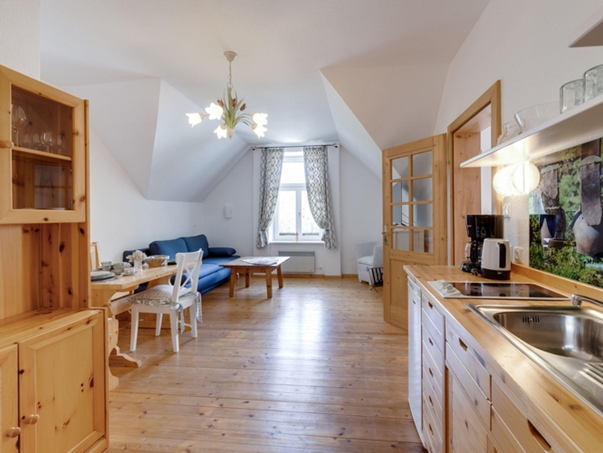 Das gemütliche Dachgeschoßappartement See-Komfort für bis zu vier Personen befindet sich im 3. Stock des herrschaftlichen Hauses und ist rund 40 m² groß (im Haus befindet sich kein Lift). Das Appartement ist mit einem Doppelzimmer mit Doppelbett, einem Wohn-/Esszimmer mit ausziehbarer Couch und einer kleinen Küchenzeile, einem Bad mit Dusche und WC ausgestattet. SAT-TV und E-Heizung sind ebenfalls vorhanden.