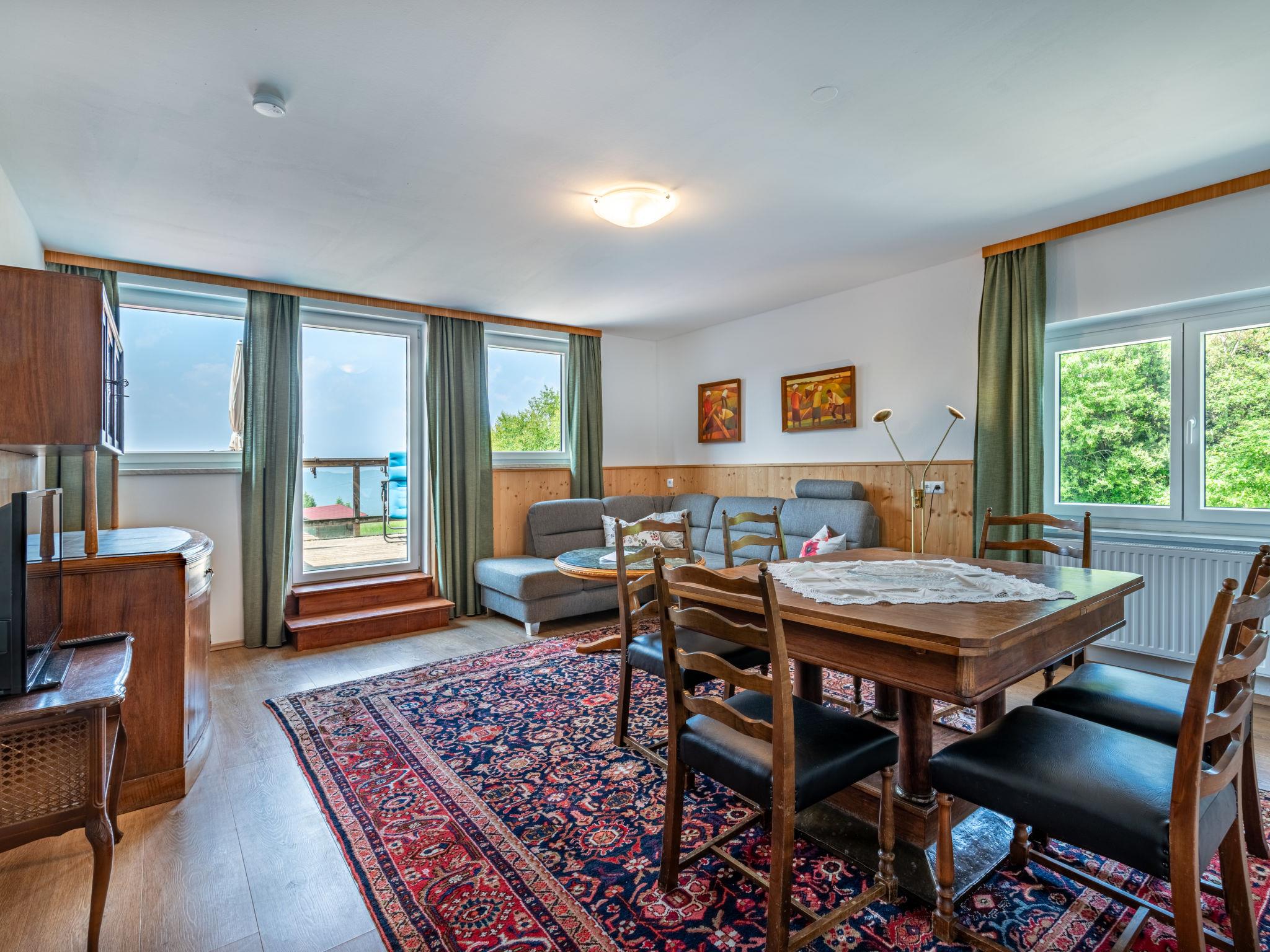 "Maisonette", 4-room maisonette 105 m2, on the upper floor. Object suitable for 6 adults. Renovated in 2025, rustic and cosy furnishings: living room with veranda. 2 showers/WC. Parquet floors, carpet. Small terrace. Terrace furniture. Very beautiful panoramic view of the mountains and the countryside. Facilities: washing machine. Internet (WiFi, free). Please note: suitable for families. Non-smoking house.