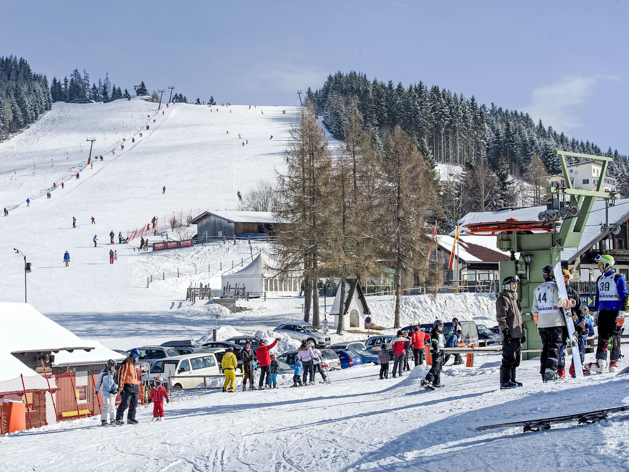 House "Simonhöhe", 2 storeys, surrounded by trees and meadows. 4 apartments in the property. Above St.Urban, in the district of Simonhöhe, 50 m from the edge of the forest, 7 km from the lake, 30 m from the skiing area. In Winter: please take snow chains. Parking. Supermarket 5 km, restaurant 100 m, bicycle rental 200 m, bus stop "Simonhöhe Bikepark" 200 m, bathing lake "St. Urban See" 7 km. Riding stable 6 km, walking paths from the house, cycle lane 50 m, ski lift, slopes 40 m, ski rental 10 m, ski school, children's ski school, cross country ski track 40 m. Nearby attractions: Minimundus die kleine Welt am Wörthersee 33 km, Moosburg Sommerrodelbahn 25 km, Burg Landskron Affenberg & Greifvögel 37 km. Well-known ski regions can easily be reached: Simonhöhe, Gerlitzen 40 km, Bad Kleinkirchheim 40 km. Well-known lakes can easily be reached: Maltschacher See 14 km, Wörthersee 29 km, Ossiacher See 29 km. Hiking paths: ca 100km Wanderwege von 8-28km Länge, 10 Mountainbike-Trails und Kids Area, Mountain-Cart über die Skipisten. Please note: suitable for families. In case of good snow conditions, the house is accessible on skis. Loading and unloading of baggage is possible at the holiday house. Additional accommodations can be booked. Property ref. 300.1,2,3,4 is situated on the same property.
