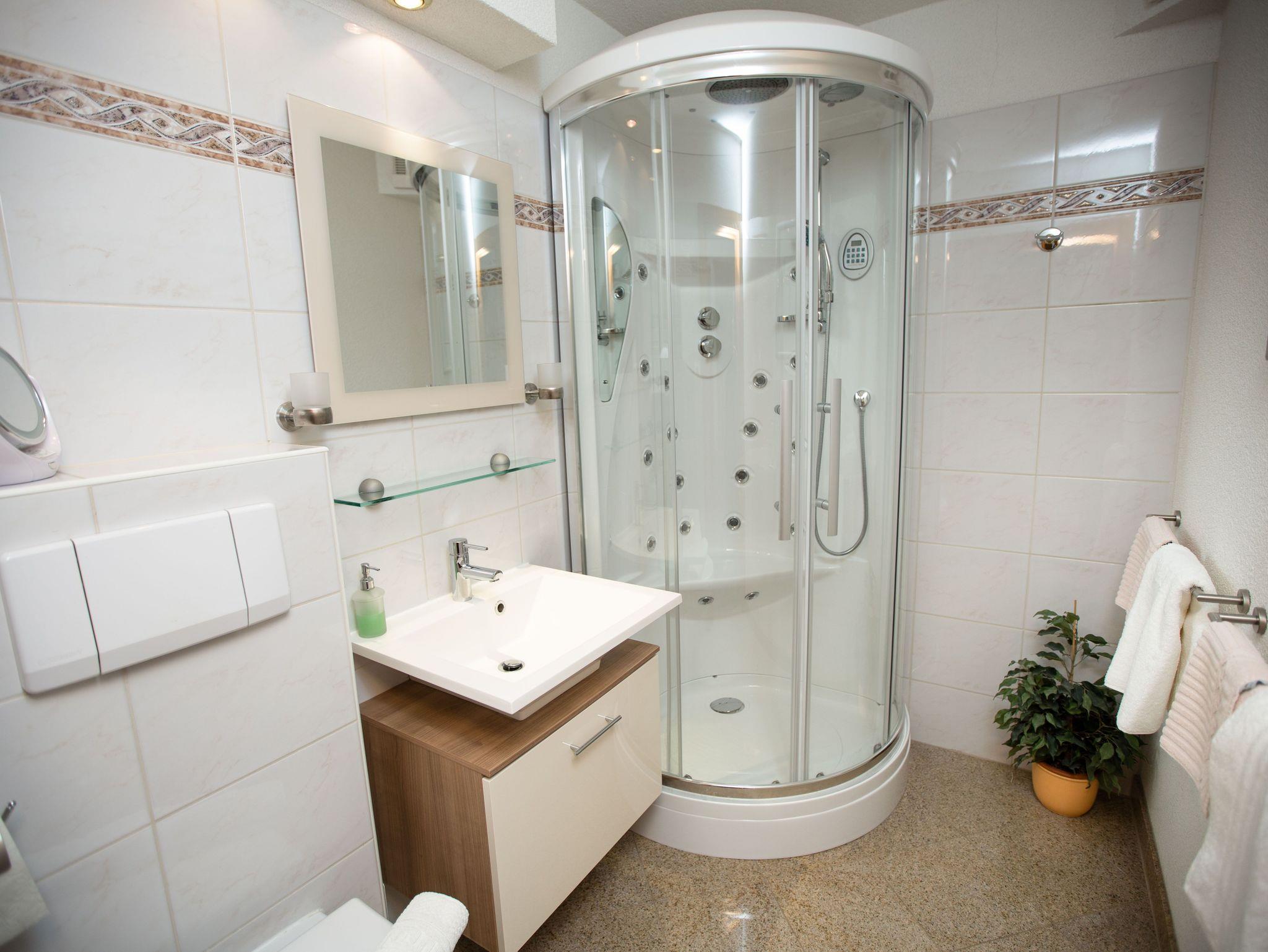 Unsere 4 de luxe Zimmer sind sehr stilvoll ausgestattet. Die Zimmer verfügen teilweise neben dem Doppelbett auch über eine gemütliche Sitzcouch zum Entspannen (als 3. Bett geeignet). Ein Flat-Screen oder Kabel-TV sowie W-Lan Anschluss und Klimaanlage runden das Angebot ab. Badezimmer mit DU, Waschbecken, WC und Fön.