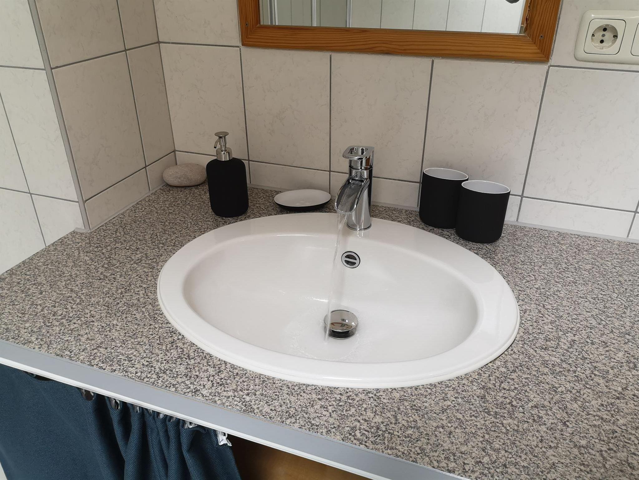 Bad mit Dusche/Badewanne und Föhn.