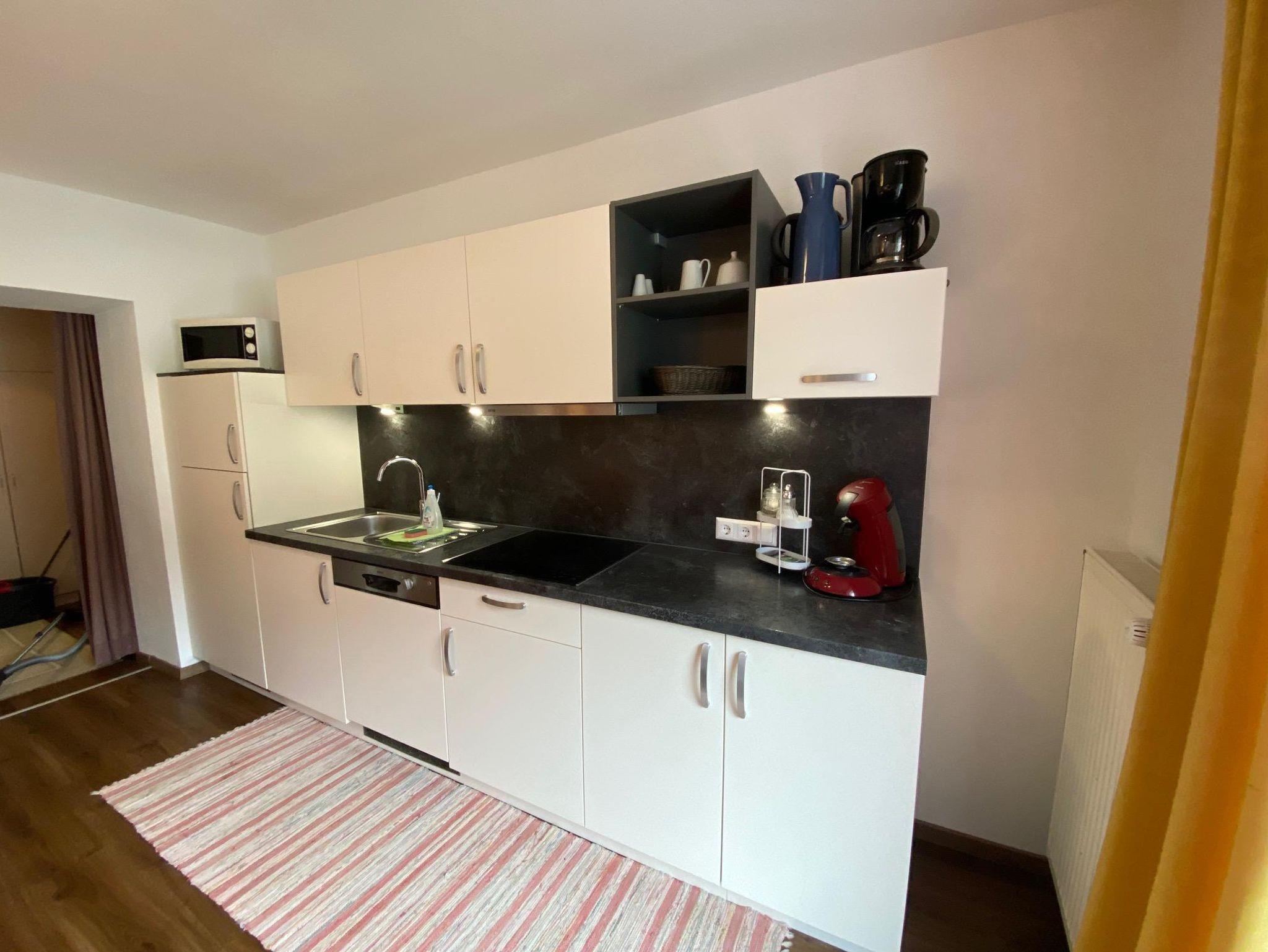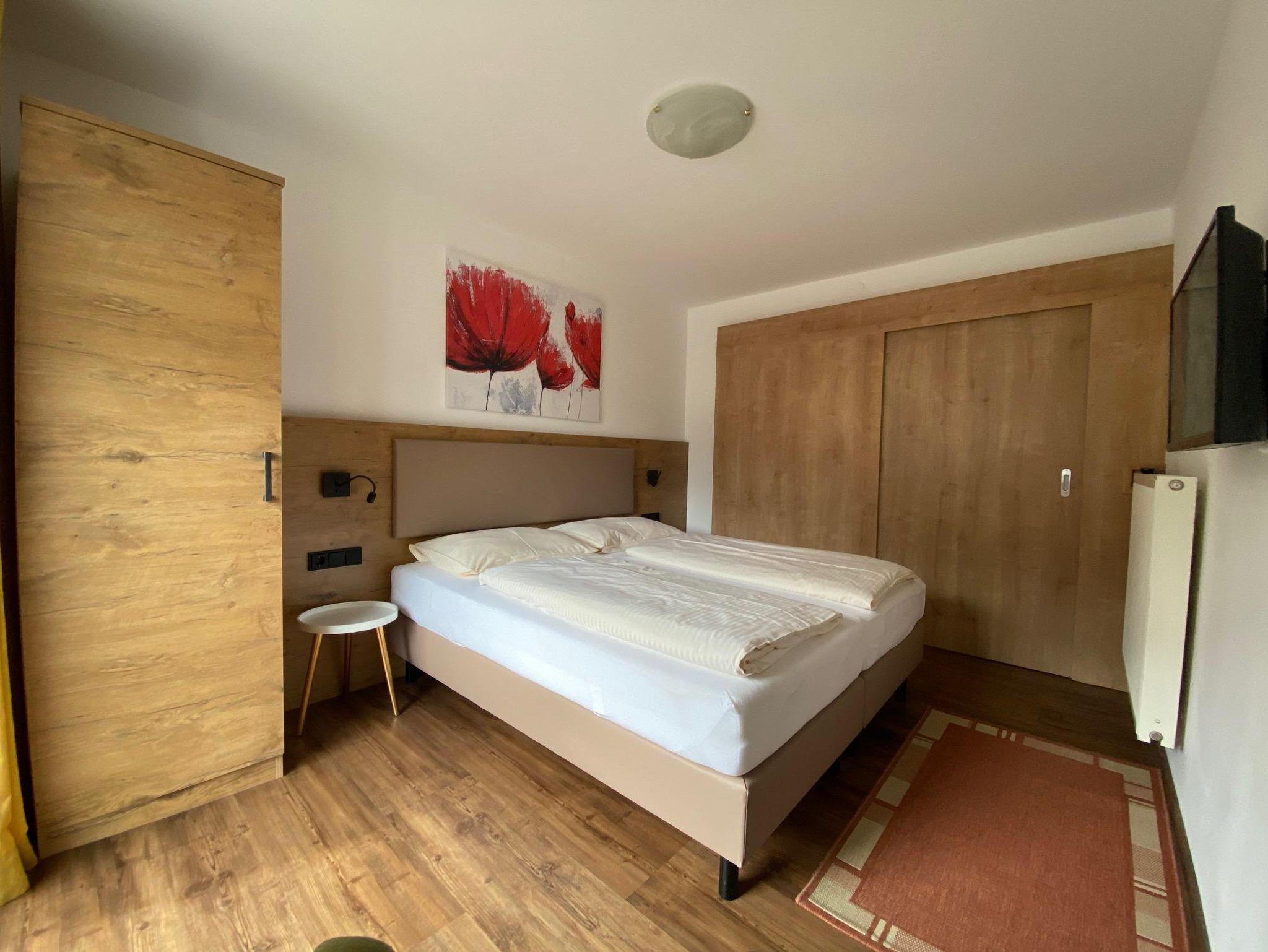 65 m² bestehend aus: 2 Doppelzimmer mit Boxspringbetten und Verbindungstür, 1Wohnzimmer mit schöner Couch (erweiterbar zum vollwertigen Doppelbett), 2 Sat/TV. Weiters verfügt die Wohnung über eine komplett ausgestattete Wohnküche mit Minibackofen, Geschirrspüler, Gefrierschrank und schöne Esstisch. Das Badezimmer ist neu renoviert mit ebenerdiger Dusche/WC. Alle Wohnbereiche sind mit Parkett ausgelegt.