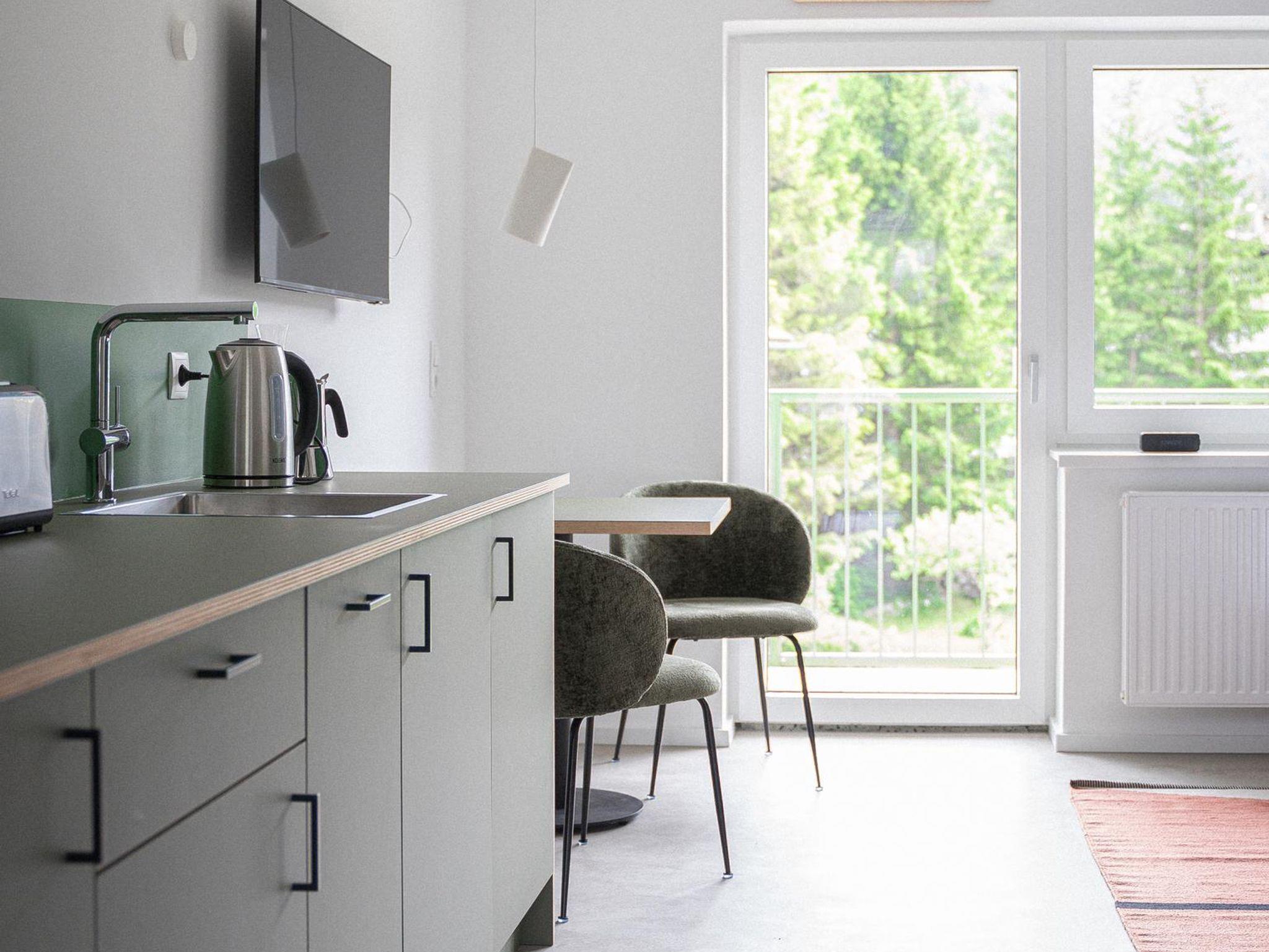 Unser 26m² großes Apartment für zwei Personen in Scharnitz, Seefeld, Tirol, besticht durch sein klares und modernes Design. Die sorgfältig ausgewählten Möbel und das durchdachte Raumkonzept schaffen eine stilvolle und zugleich gemütliche Atmosphäre. Ideal für Paare oder Alleinreisende, die eine Unterkunft mit elegantem Ambiente suchen.