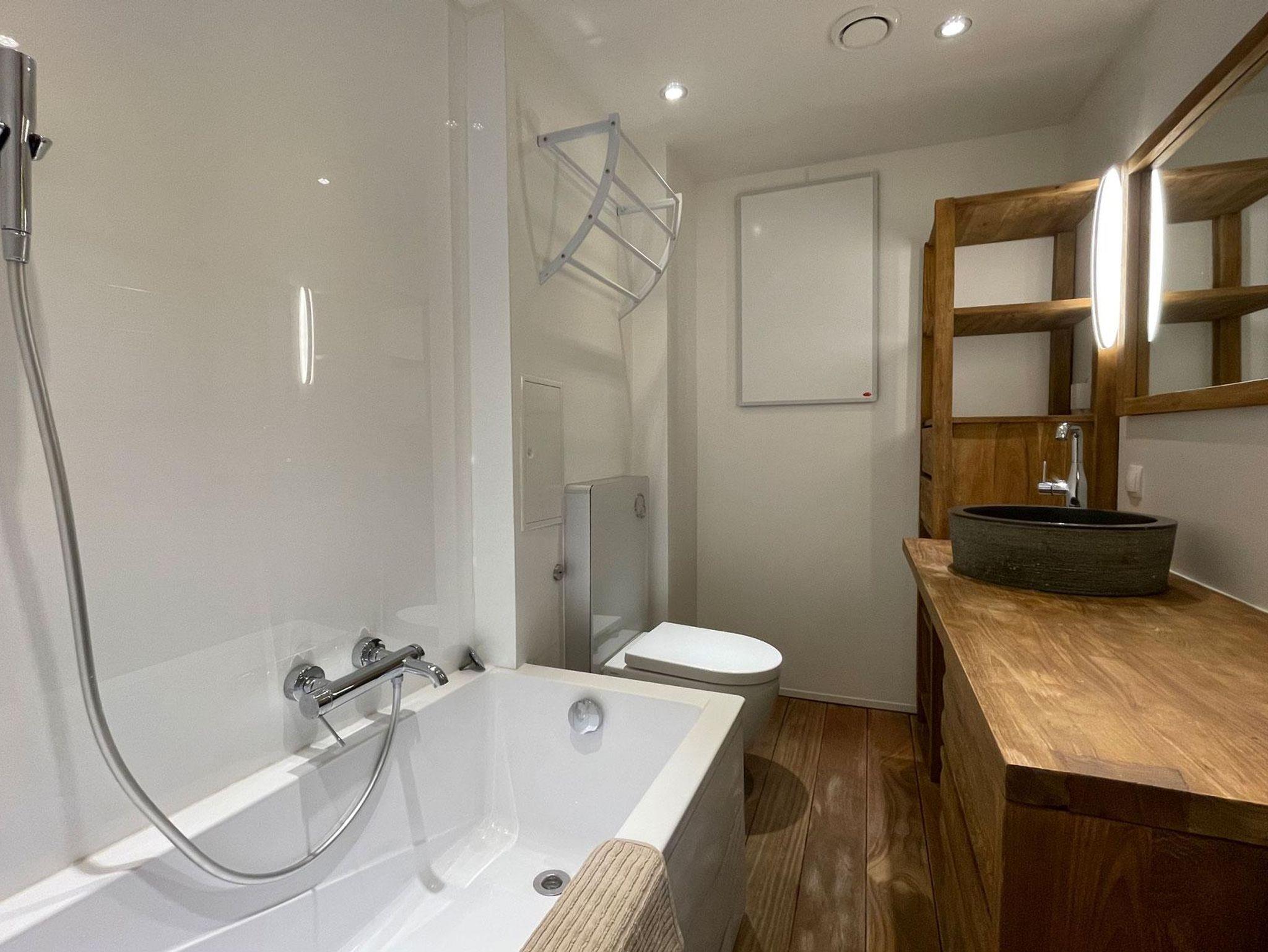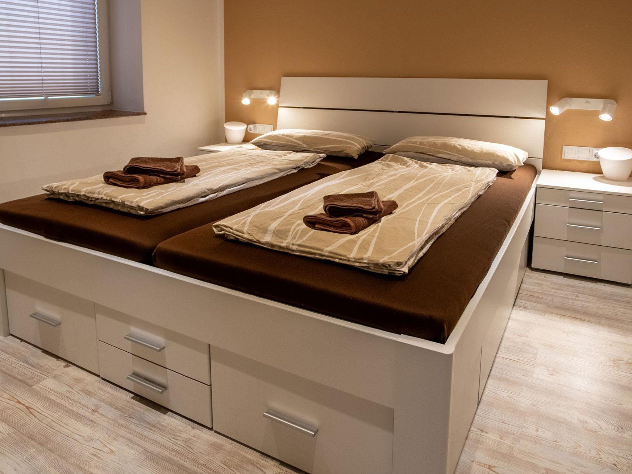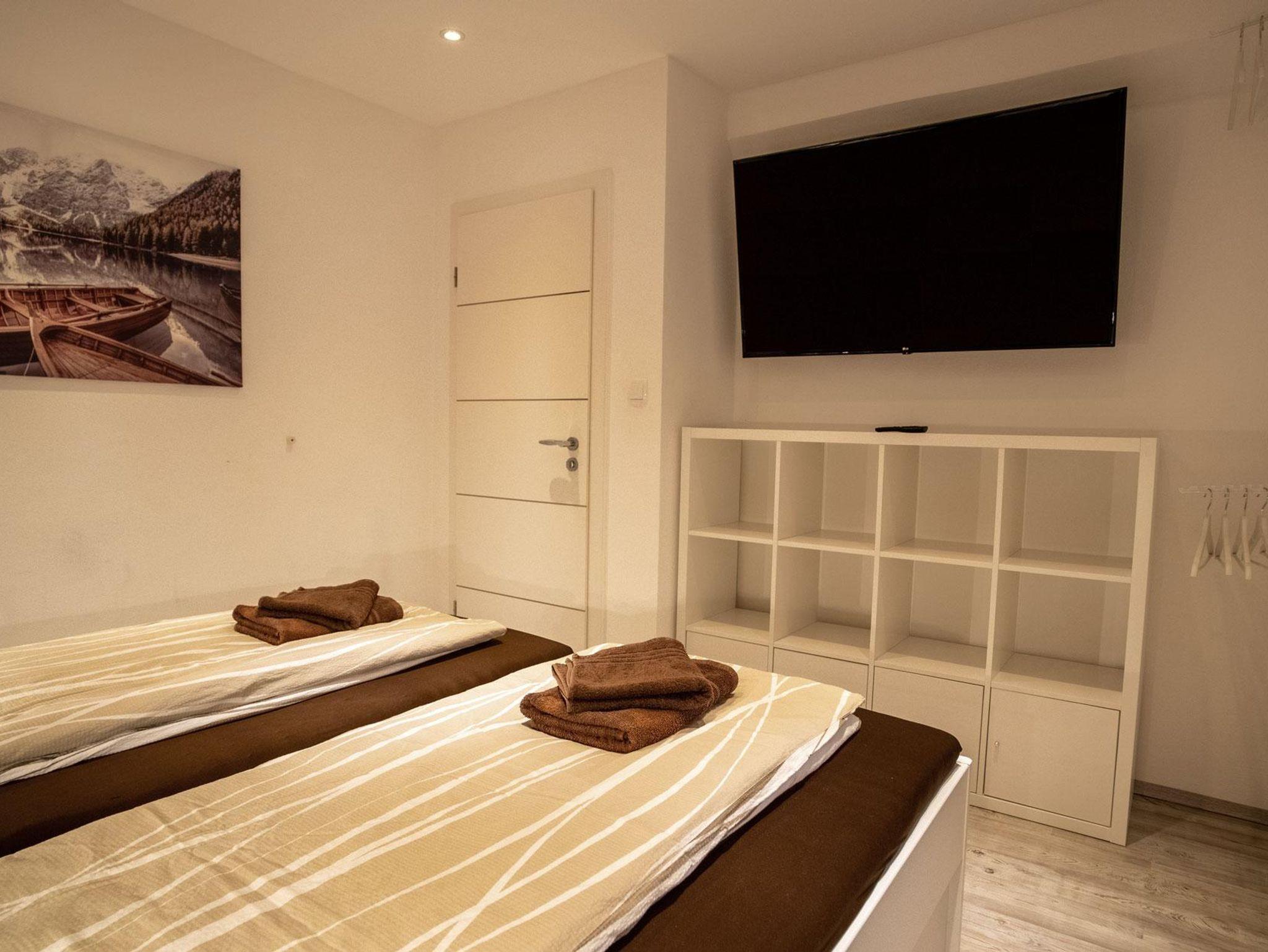 Dieses 105m² große Apartment bietet viel Platz für Familien oder Gruppen. Drei Schlafzimmer – zwei mit Doppelbett, eines mit Stockbett für 3 Personen – sorgen für erholsamen Schlaf. Eine voll ausgestattete Küche und zwei Badezimmer bieten höchsten Komfort. Entspannen Sie auf der Südterrasse oder genießen Sie den Ausblick vom Südwest-Balkon. Perfekt für einen erholsamen und geselligen Aufenthalt in bester Lage!
