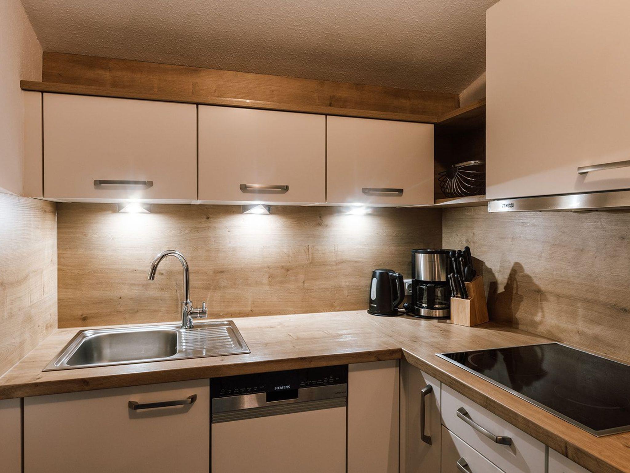 • voll ausgestattete Küchenzeile (Filterkaffeemaschine, Wasserkocher, Eierkocher, Toaster, Kühlschrank mit Gefrierfach, Geschirrspüler)