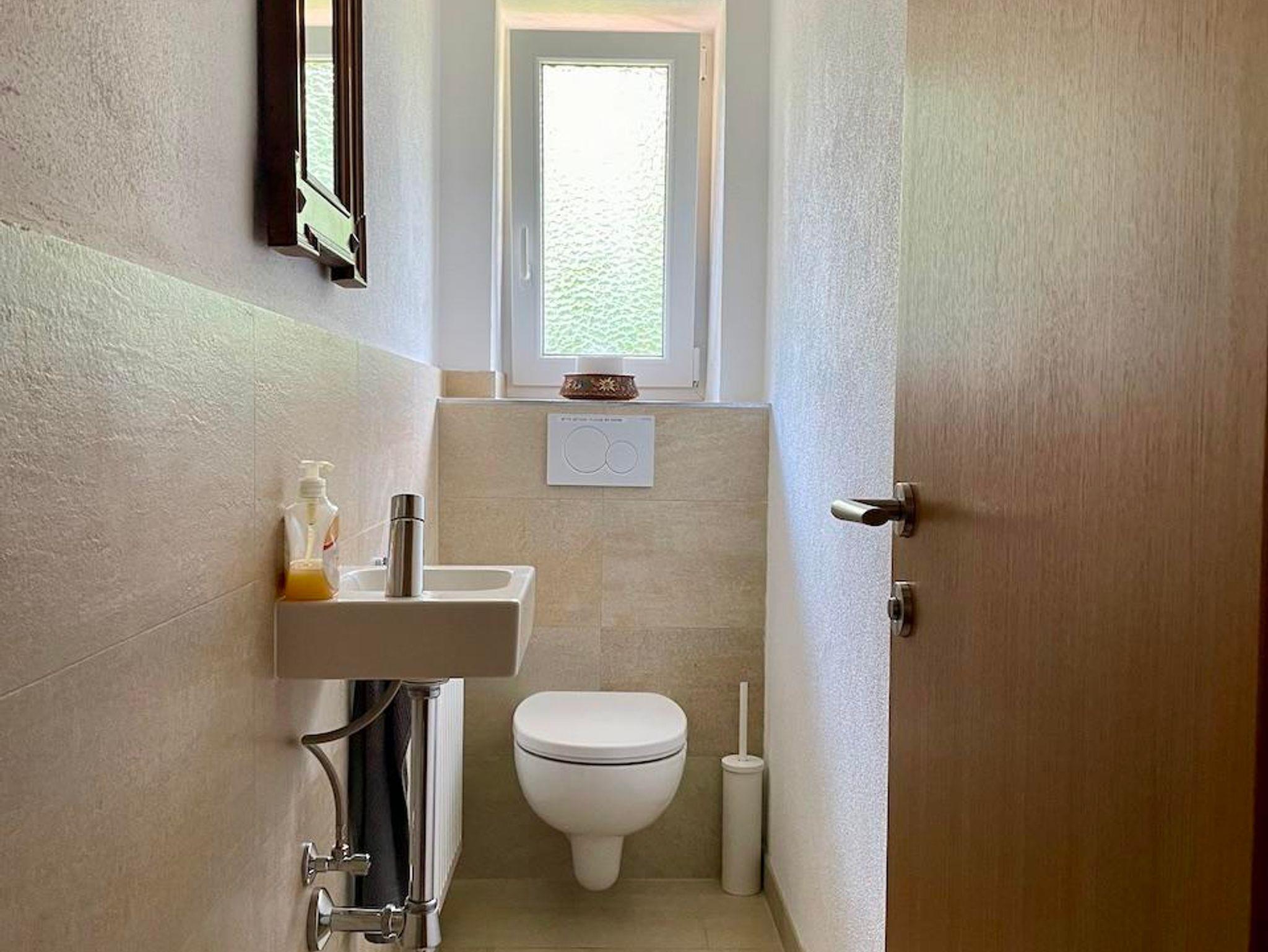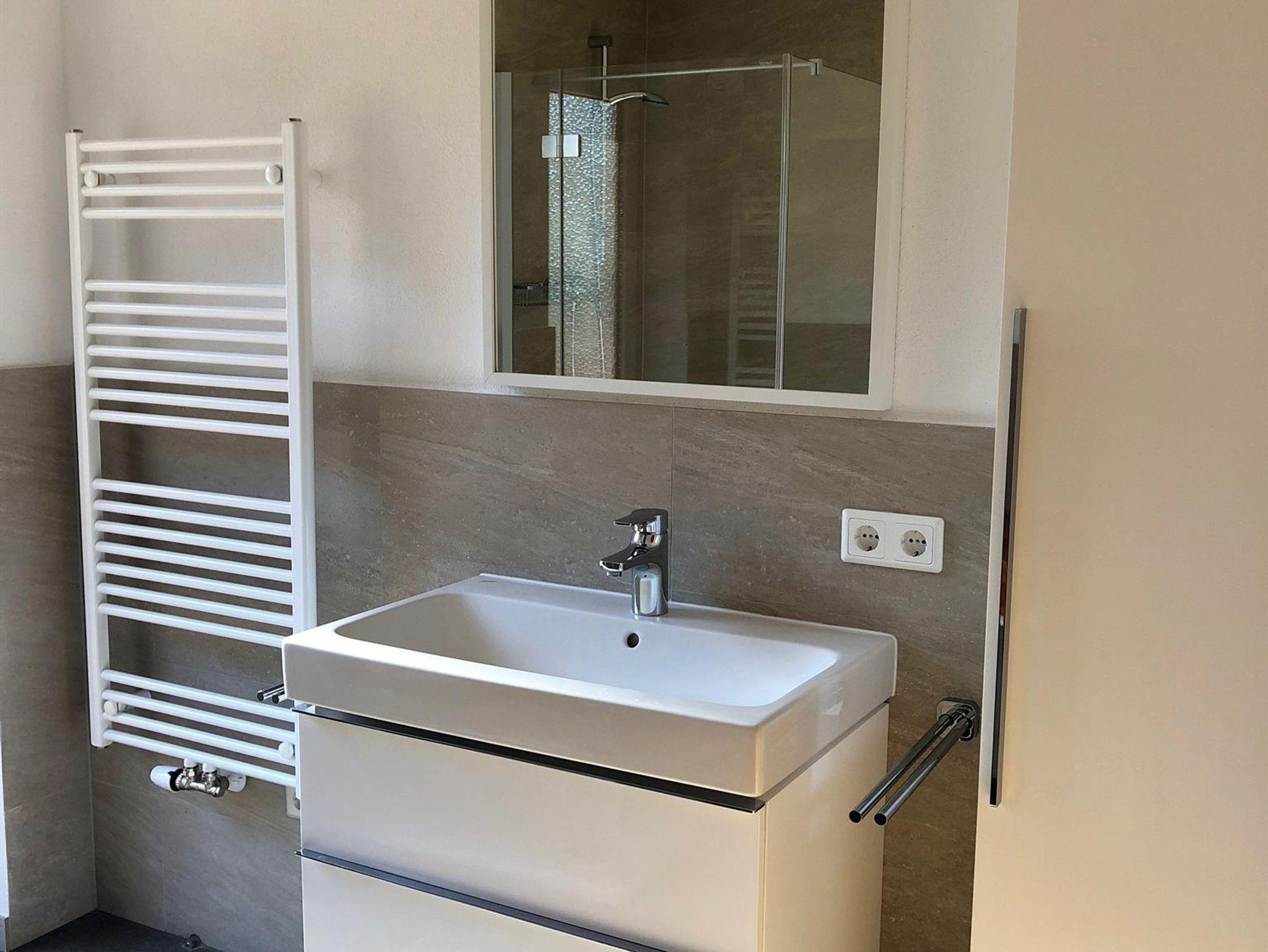 Das Bad hat eine Dusche und Fußbodenheizung. WC ist separat.