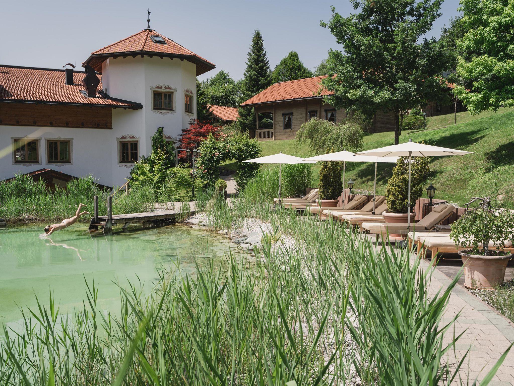 Das Vier-Sterne Superior Hotel bezaubert durch seine luxuriöse Einrichtung im Landhausstil, einer exzellenten Küche und einem einladenden Spa- und Wellnessbereich mit natürlichem BIO-Badeteich.