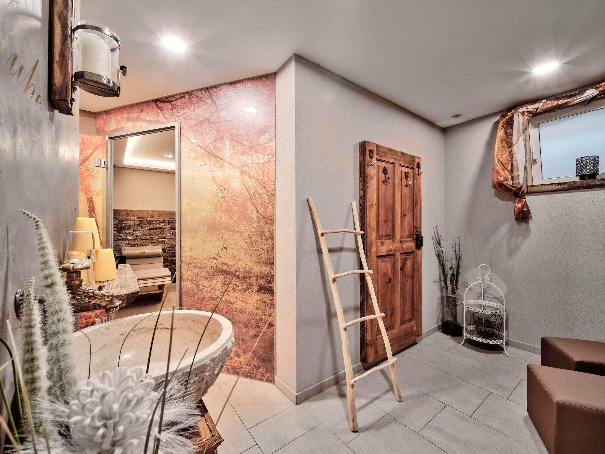 Saunalandschaft mit Almsauna, Kristalldampfbad, Infrarotlounge, Erlebnisduschen, Ruheraum und Tee-Eck (täglich von 15:00 Uhr - 18:30 Uhr).