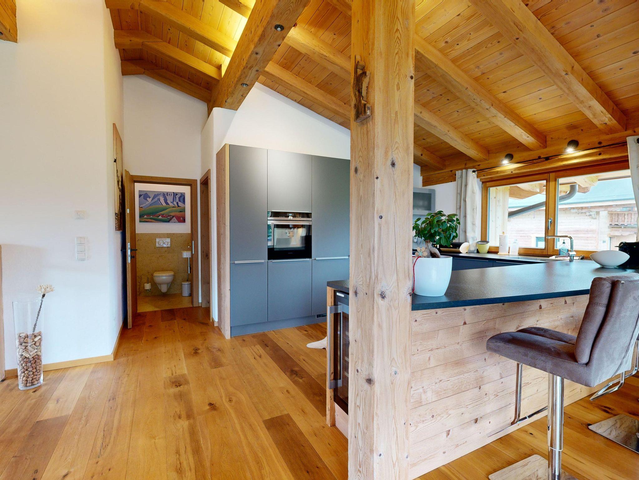 Hochwertig, aber gleichzeitig gemütlich eingerichtet kann man hier entspannen, relaxen in der Infra-Rot Sauna, sonnenbaden auf dem Balkon oder mit Freunden und Familie im geräumigen Wohn-Ess-Bereich den Tag ausklingen lassen. Wir haben das Haus selbst gebaut und auf Luxus wertgelegt. Die Böden sind mit Vollholz-Eichendielen ausgelegt, die Küchen mit Granitplatten ausgestattet und die Infra-Rot Saunen mit Zirbenholz ebenso wie die Betten extra vom Schreiner angefertigt.