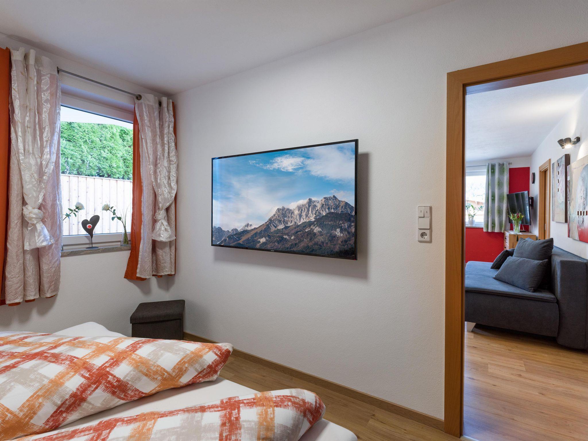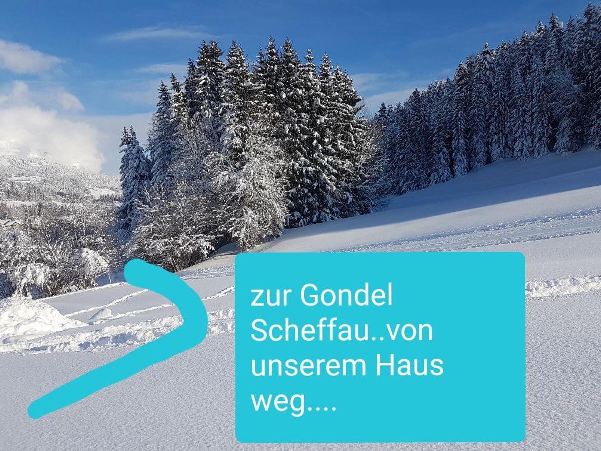 Modernes Haus mit dem 55 m² Apartment, 2 Schlafzimmer, Wohnküche komplett eingerichtet (Geschirr, Geschirrspüler, SAT-FLAT-TV, Schlafcouch, usw;) Schuhtrockner, direkt an der Talabfahrt Scheffau im Talstationsbereich, mit traumhaften Blick auf den Wilden Kaiser, W-LAN, Bettwäsche und Handtücher werden beigestellt, separater Eingang, Parkplatz direkt vor dem Apartment, Brötchenservice kann bestellt werden. Bushaltestelle in nächster Nähe.Für Kinder stellen wir gerne unser Reisegitterbett auf, und es ist auch ein Hochstuhl im Haus. Wir haben einen Sandkasten, Bobby Car und Traktoren zur freien Verfügung für unsere kleinen Gäste, direkt vor dem Apartment. Im Winter können die Kids vor der Haustür Schneerutschen, rodeln .