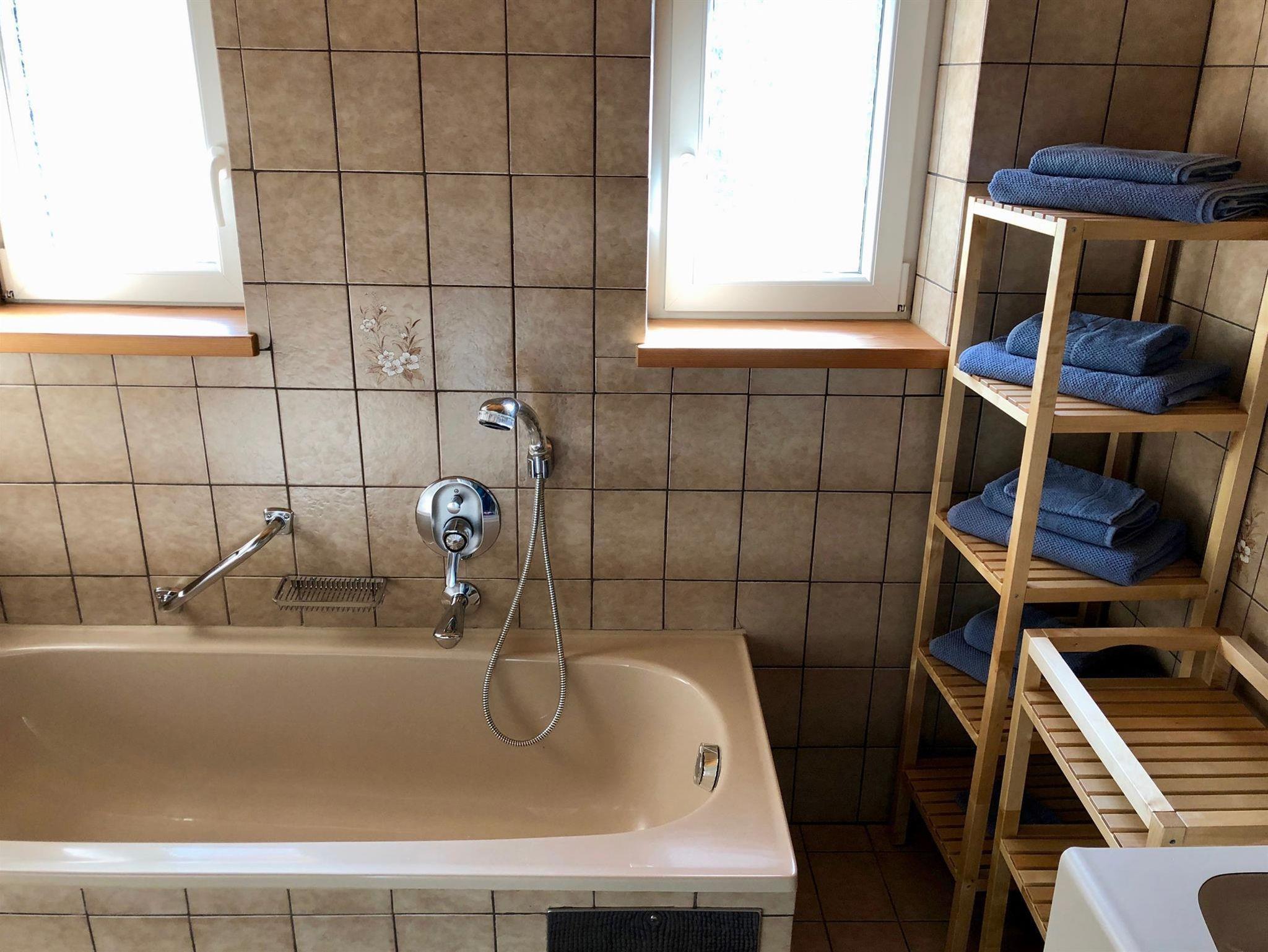 Das Bad hat eine Dusche und Badewanne. WC ist separat.