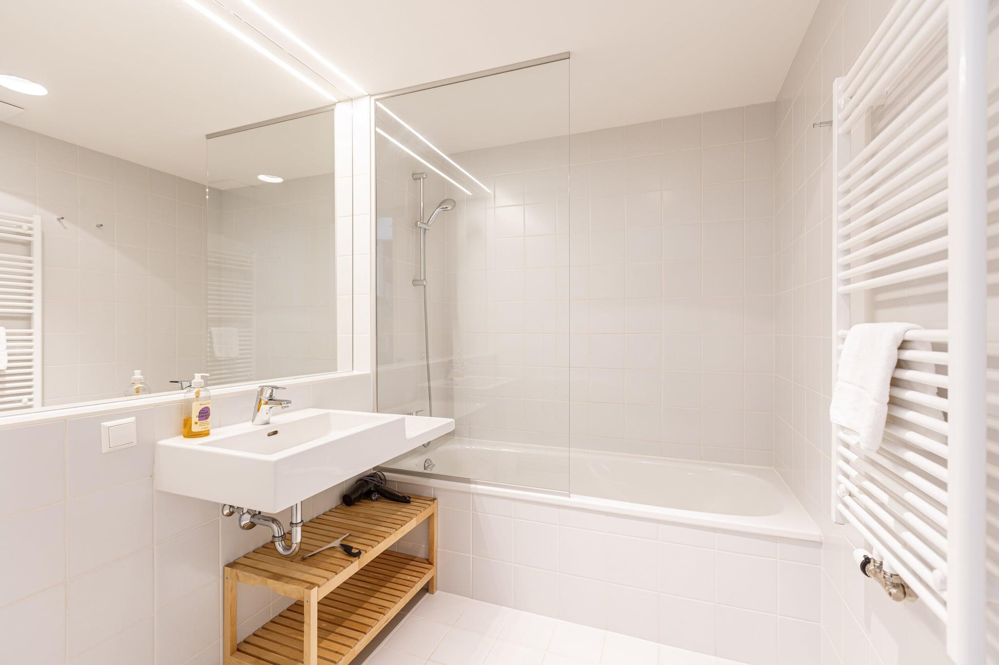 "Velkommen til dit rummelige og stilfulde tilflugtssted i Alpenrock Schladming! Denne ekspansive 121 m² store lejlighed kan komfortabelt rumme op til 8 gæster og tilbyder ideelle rammer for familier eller grupper, der søger en luksuriøs alpine flugt i den fortryllende Schladming-Dachstein-region. Træd udenfor for at nyde møbleret terrasse eller balkon, hvor du kan slappe af og nyde den fantastiske alpine udsigt. Lejligheden har tre velindrettede soveværelser, hver med en komfortabel dobbeltseng for at sikre en god nats søvn. Derudover giver en dobbelt sovesofa i stuen ekstra sovepladser. Lejligheden er udstyret med to moderne badeværelser: et med et beroligende badekar og et andet med en praktisk bruser. Det åbne køkken er en koks drøm, fuldt udstyret med højkvalitets hvidevarer, herunder en keramisk kogeplade, ovn, opvaskemaskine og køleskab med fryser. Du finder også alt det nødvendige køkkenudstyr, såsom bestik og køkkengrej, samt en brødrister, elkedel og kaffemaskine. For at forbedre dit ophold, vil et lille startsæt med opvaskemaskinefaner, opvaskemiddel, en svamp, affaldssække, en renseklud og et viskestykke blive leveret ved din ankomst. Lejligheden ligger kun 200 meter fra skibakken og tilbyder nem adgang til vintersport og udendørsaktiviteter. Hovedbygningen har et wellness-område med sauna og afslapningsrum samt et fællesrum til socialt samvær og afslapning. Gratis Wi-Fi og satellit-tv er inkluderet for at holde dig forbundet og underholdt under hele dit ophold. Bemærk venligst, at alle billeder er eksempelbilleder; hver lejlighed er unikt indrettet for at give en personlig oplevelse. "