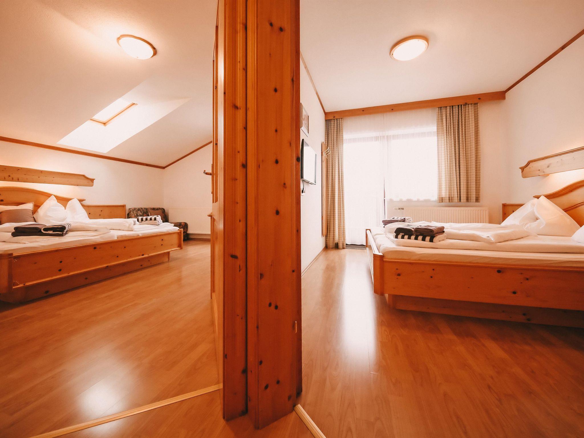 geräumiges Appartement im Stammhaus mit zwei Doppelzimmern. Wenn man das Sofa in der Wohnküche mitbenützt, bietes das Dachstein platz für bis zu 6 Personen. Ein Zusatbett in einem der Schlafzimmer ist auch noch möglich. Die zwei Balkone bieten einen wunderbaren Rundumblick zum Dachsteinmassiv.