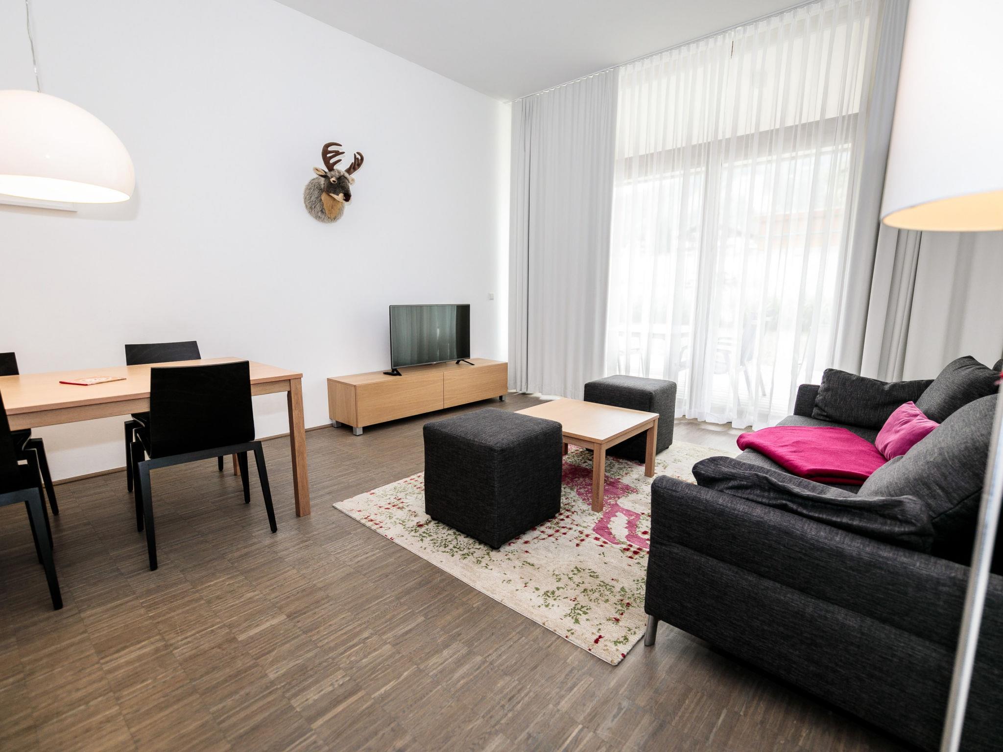 "mit 1 Schlafzimmer & Saunabereich", 2-room apartment 45 to 56 m2. Object suitable for 2 adults + 2 children. Bright, modern furnishings: entrance hall. Living/sleeping room with 1 double sofabed, dining table and satellite TV (flat screen). 1 double bedroom. Open kitchen (oven, dishwasher, 4 ceramic glass hob hotplates, freezer, electric coffee machine). Bathroom, sep. WC. Balcony or terrace. Balcony furniture. Very beautiful view of the mountains and the countryside. Facilities: Internet (WiFi, free). Please note: non-smokers only. The property is one of a type of property or apartment. Special requests please inquire while booking! A later consideration or transfer to another object on site can not be guaranteed.