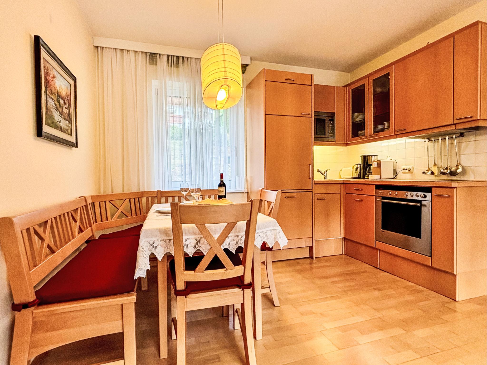 "Apart Annemarie", 2-room apartment 48 m2, on the top floor. Object suitable for 2 adults + 2 children. Bright, cosy furnishings: entrance hall. Living/sleeping room with 1 double sofabed, Scandinavian wood stove, dining nook, satellite TV and international TV channels (flat screen), hi-fi system. Exit to the balcony. 1 double bedroom. Open kitchen (oven, dishwasher, 4 ceramic glass hob hotplates, toaster, kettle, microwave, freezer, electric coffee machine). Bath/shower/WC. Electric heating. Parquet floors. Balcony 23 m2, south facing position. Balcony furniture. Very beautiful panoramic view of the mountains and the ski run. Facilities: washing machine. Internet (WiFi, free). Please note: non-smokers only.