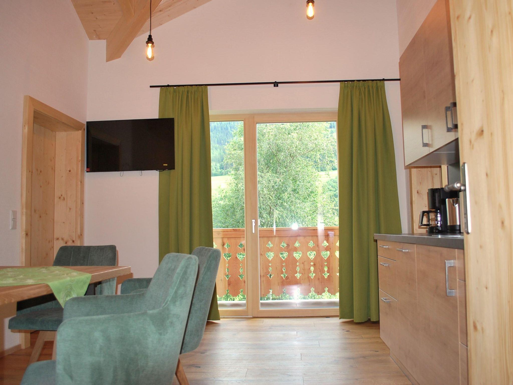 Die Balkon ist in Richtung süden ausgereichtet und ihr blickt ins Grüne.