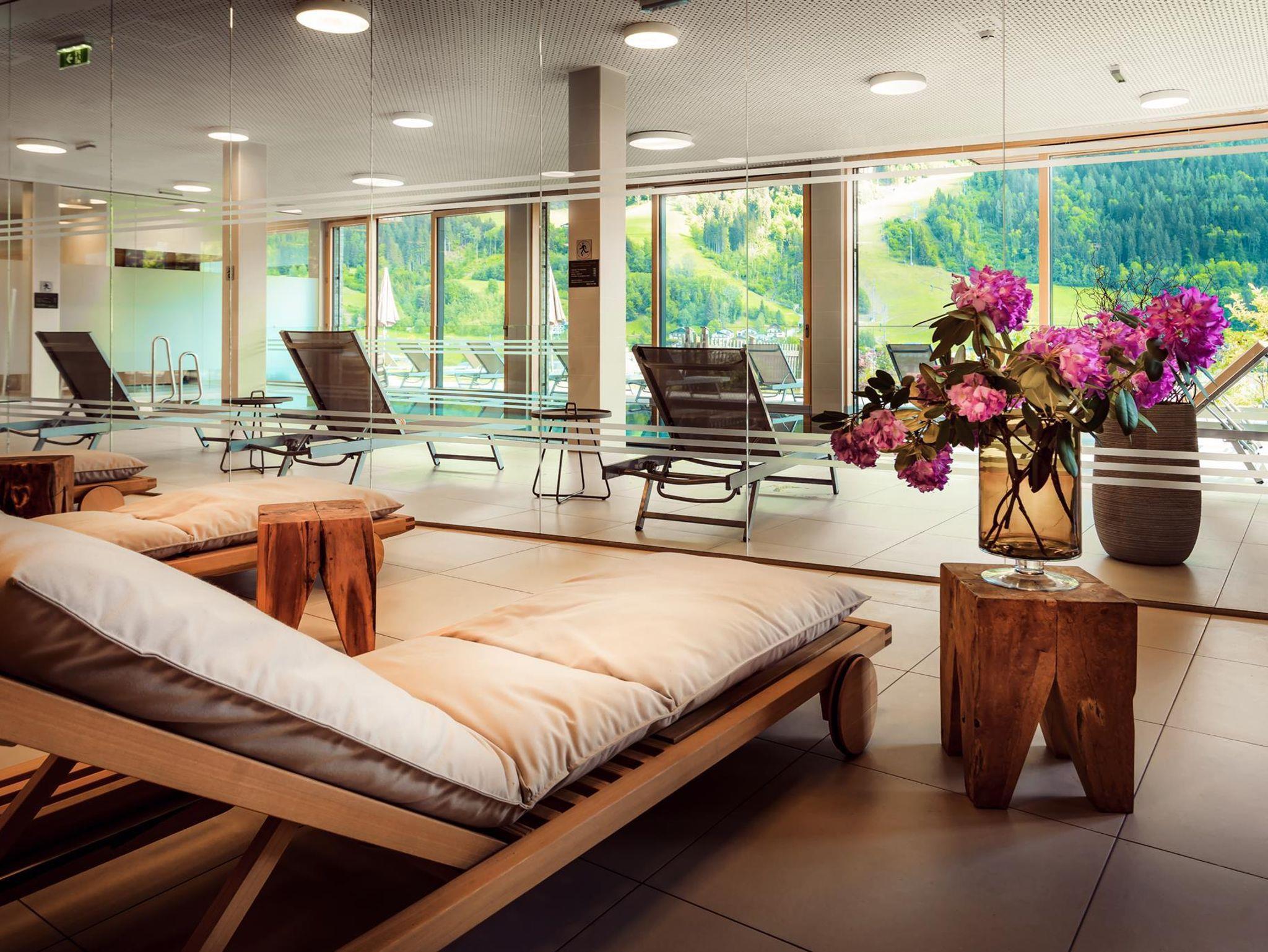Ein absolutes Highlight der SUN LODGE ist der Wellnessbereich. In einer atemberaubenden Aussichtslage lädt das Spa an 365 Tagen im Jahr zum Schwimmen und Energietanken ein. Genießen Sie einen 360 Grad Weitblick über das Ennstal mit Blick auf Schladming und die Schladminger Hausberge Planai und Hochwurzen. Ein Edelstahl Indoor-Pool, eine finnische Sauna, ein Dampfbad, eine Kaminlounge, individuelle Ruhebereiche, Behandlungsräume für Massagen und Beauty und Umkleidekabinen laden im Inneren zum Entspannen ein.