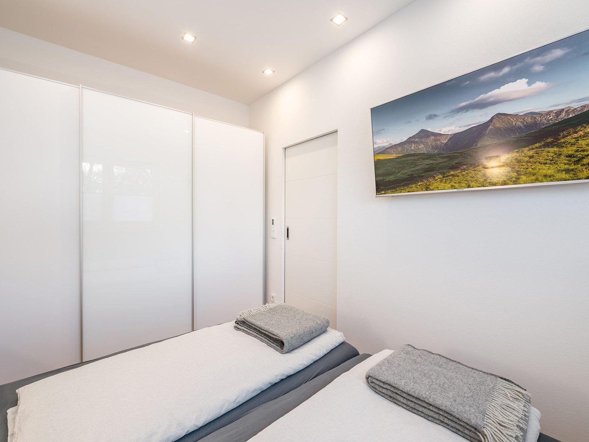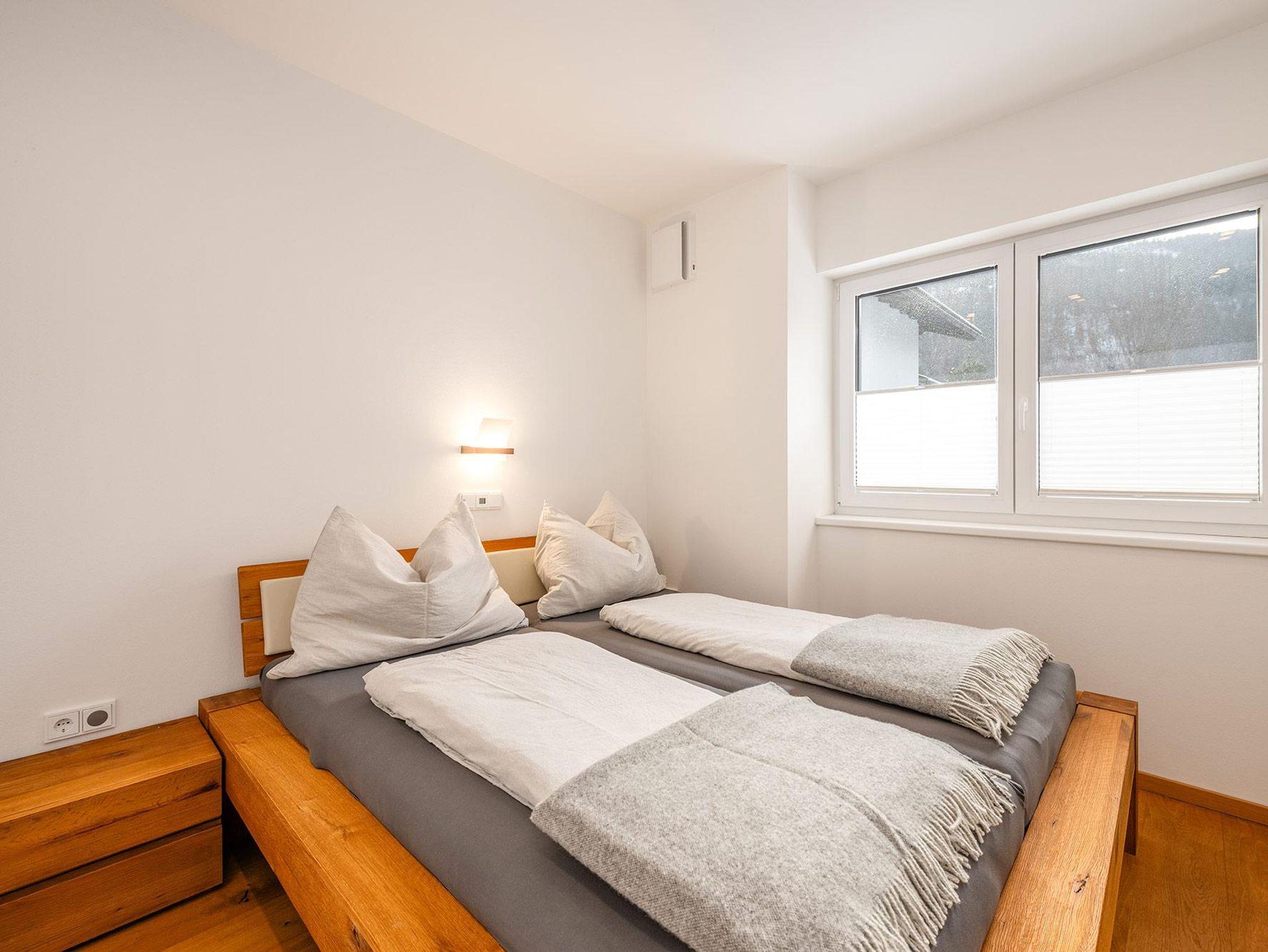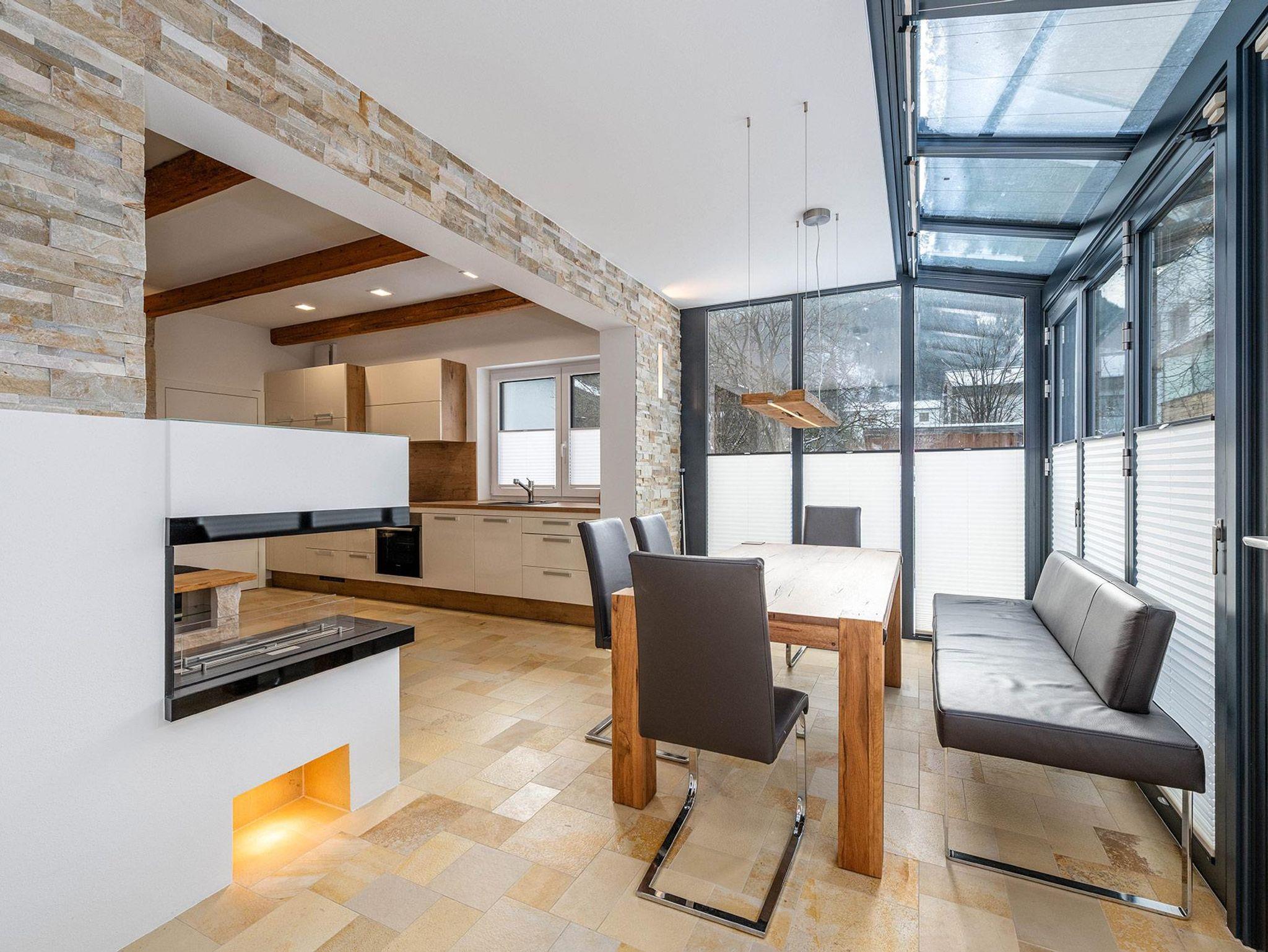 Auf 64 m² Wohnfläche bietet das Apartment Platz für bis zu 5 Personen. Zwei getrennte Schlafzimmer mit jeweils einem 180 cm Doppelbett sorgen für höchsten Schlafkomfort, ergänzt durch ein Schlafsofa im Wohn- und Essbereich. Der lichtdurchflutete Wintergarten mit Essbereich verbindet Innen- und Außenraum auf elegante Weise, während die private Terrasse zum Entspannen nach einem aktiven Tag in den Bergen einlädt.
