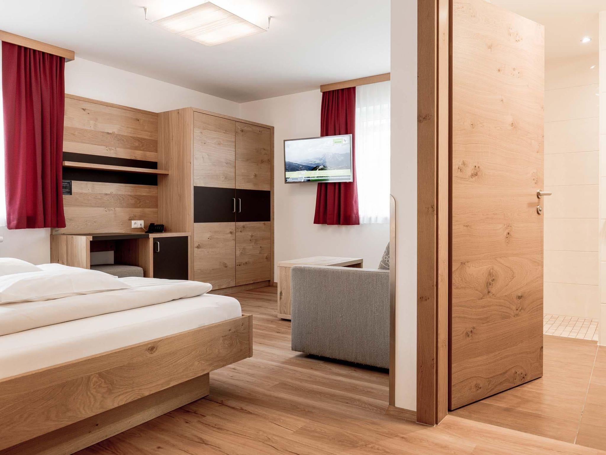 Die vollausgestatteten Appartements und Zimmer sind großzügig gestaltet, warme Farben und viel Holz sorgen für ein angenehmes Wohngefühl. Eine wohltuende Auszeit und Ruhe genießt du im kleinen, aber feinen Wellnessbereich mit Finnischer Sauna, Kräutersauna und Infrarotkabine. Weiteren Komfort bietet die Parkgarage (reservierungs- und kostenpflichtig) mit direktem Zugang zum Appartementgebäude und zum Aufzug sowie ein Ski- und Schuhraum mit beheizten und verschließbaren Skisafes.