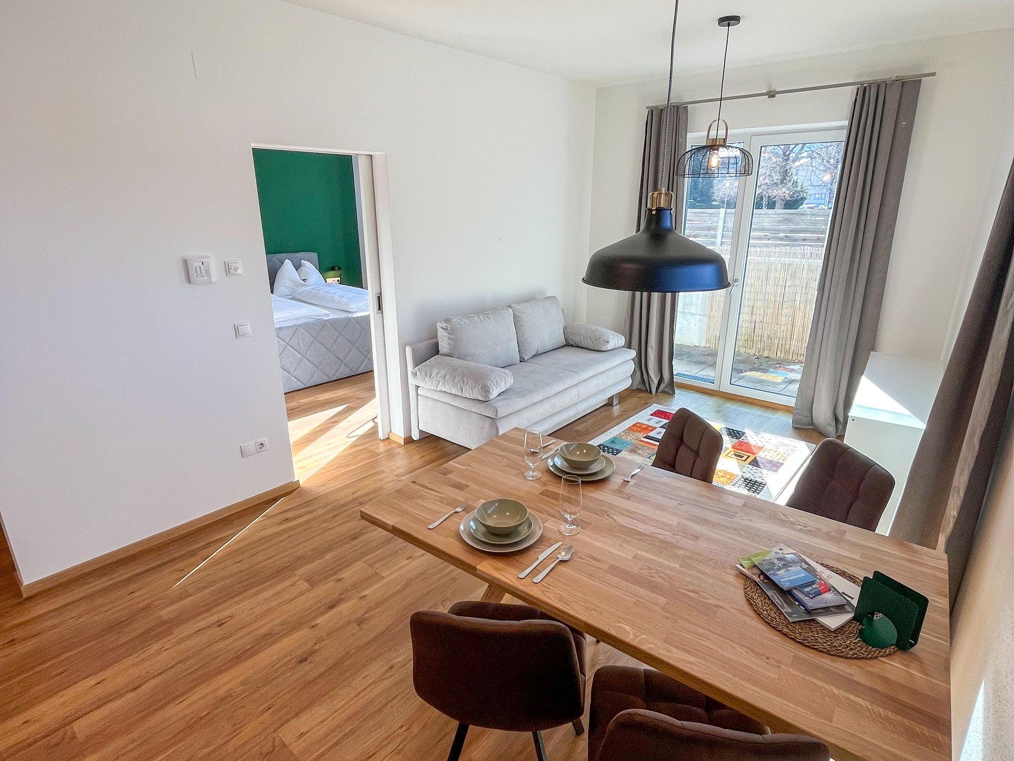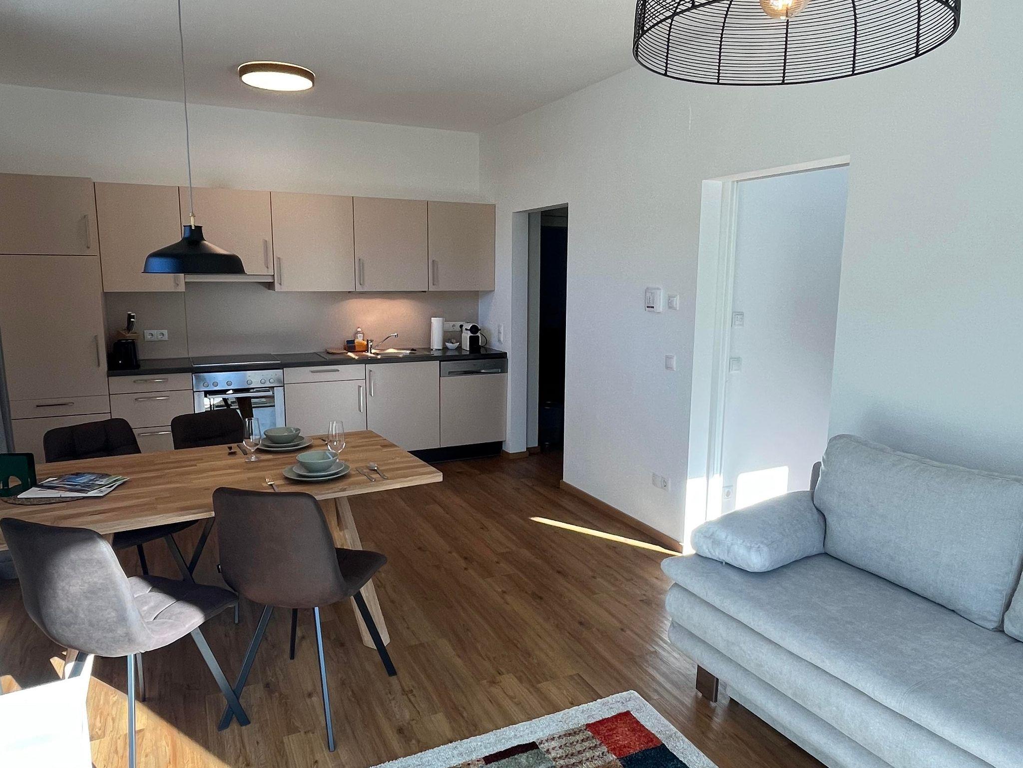 Unser neues, gemütliches Appartement ist aufgeteilt in einen Vorraum, eine geräumige Wohnküche, ein Schlafzimmer und ein getrenntes Bad und WC.