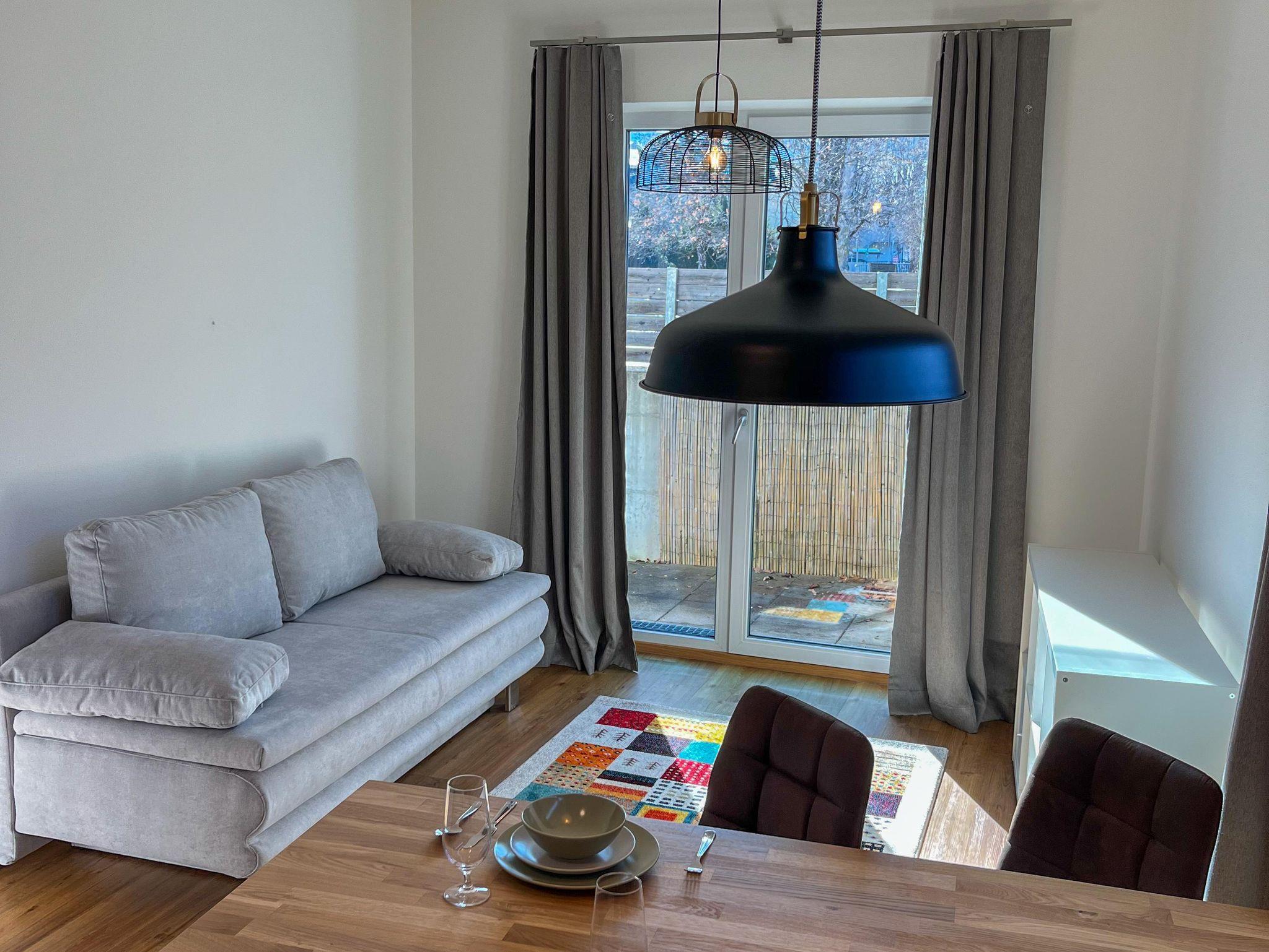 In der Wohnküche befindet sich eine voll ausgestattete Küchenzeile. Eine neue Nespresso-Kaffeemaschine und eine Mikrowelle stehen zur freien Verfügung. Das ausziehbare Sofa bietet Platz für 2 weitere Personen. Gratis W-Lan, sowie ein TV sind ebenfalls vorhanden. Über das Wohnzimmer lässt sich der private Außenbereich betreten. Im Schlafzimmer befindet sich ein King-Size-Bett und ein Schrank sorgt für genügend Stauraum.