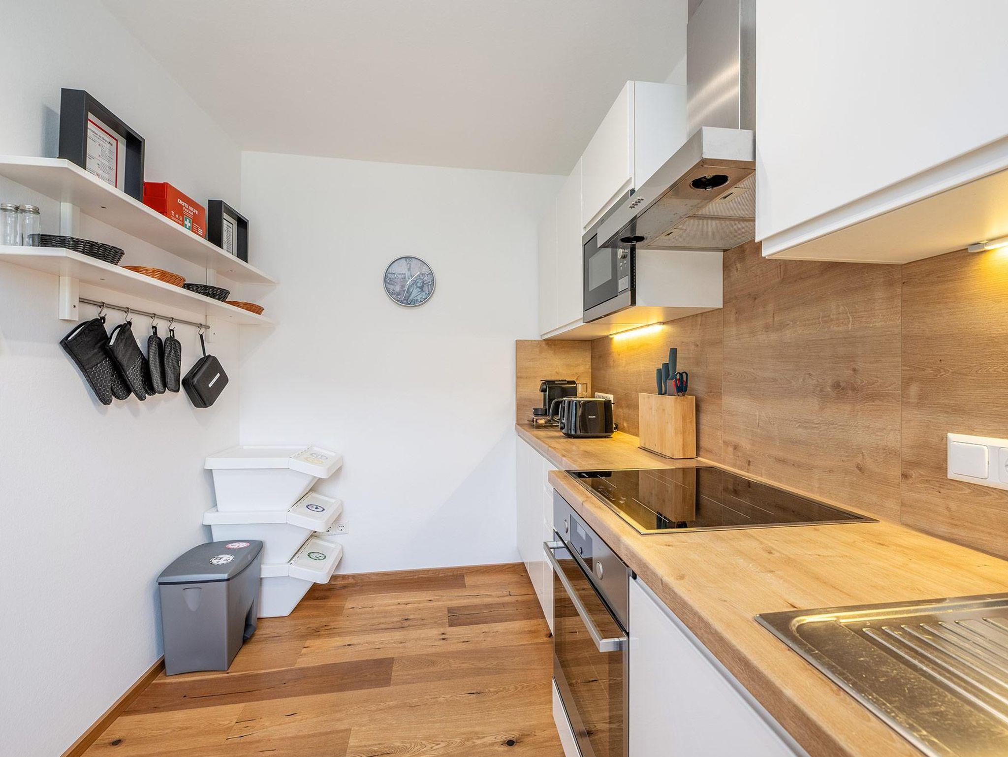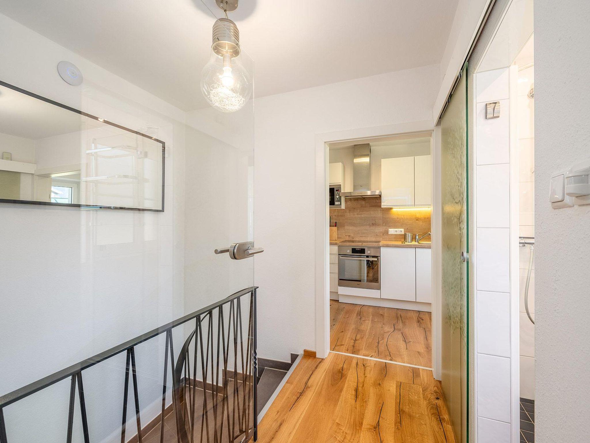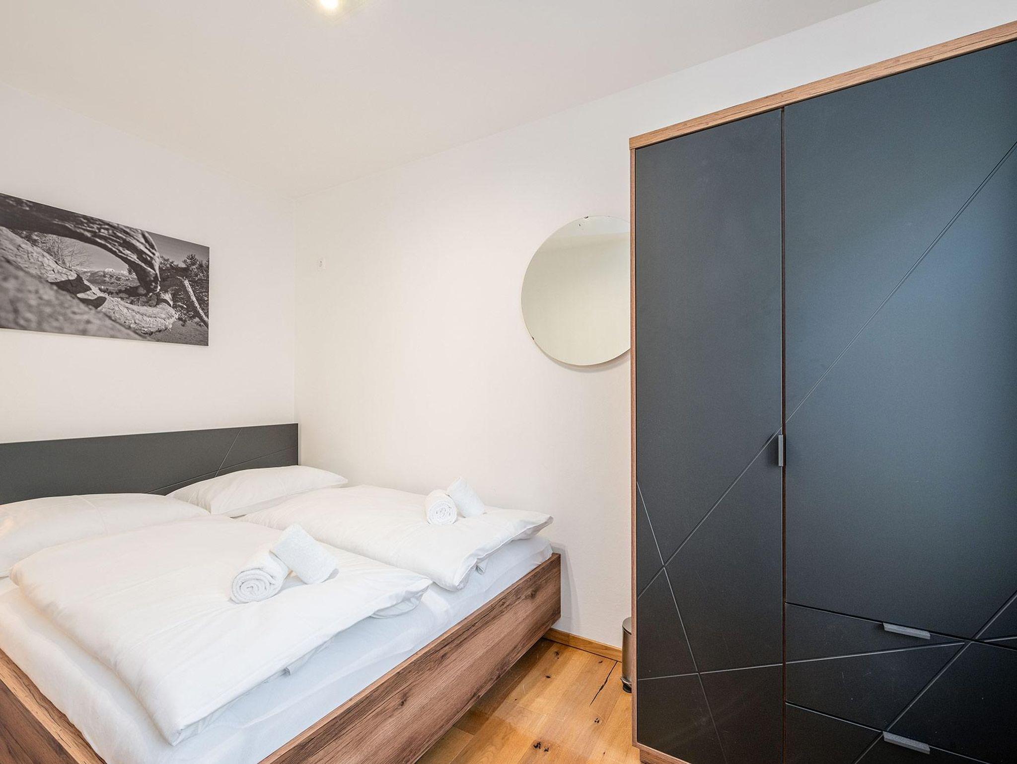 Zwei separate Schlafbereiche mit einem 180-cm-Doppelbett und einem 160-cm-Doppelbett sorgen für erholsame Nächte, während im Wohnbereich ein gemütliches Schlafsofa zusätzliche Schlafmöglichkeit bietet. Der offen gestaltete Wohn-Essbereich mit voll ausgestatteter Küche lädt zu entspannten Abenden nach einem aktiven Tag in den Bergen ein. Das Badezimmer mit Dusche sowie die separate Toilette bieten zusätzlichen Komfort und Privatsphäre.