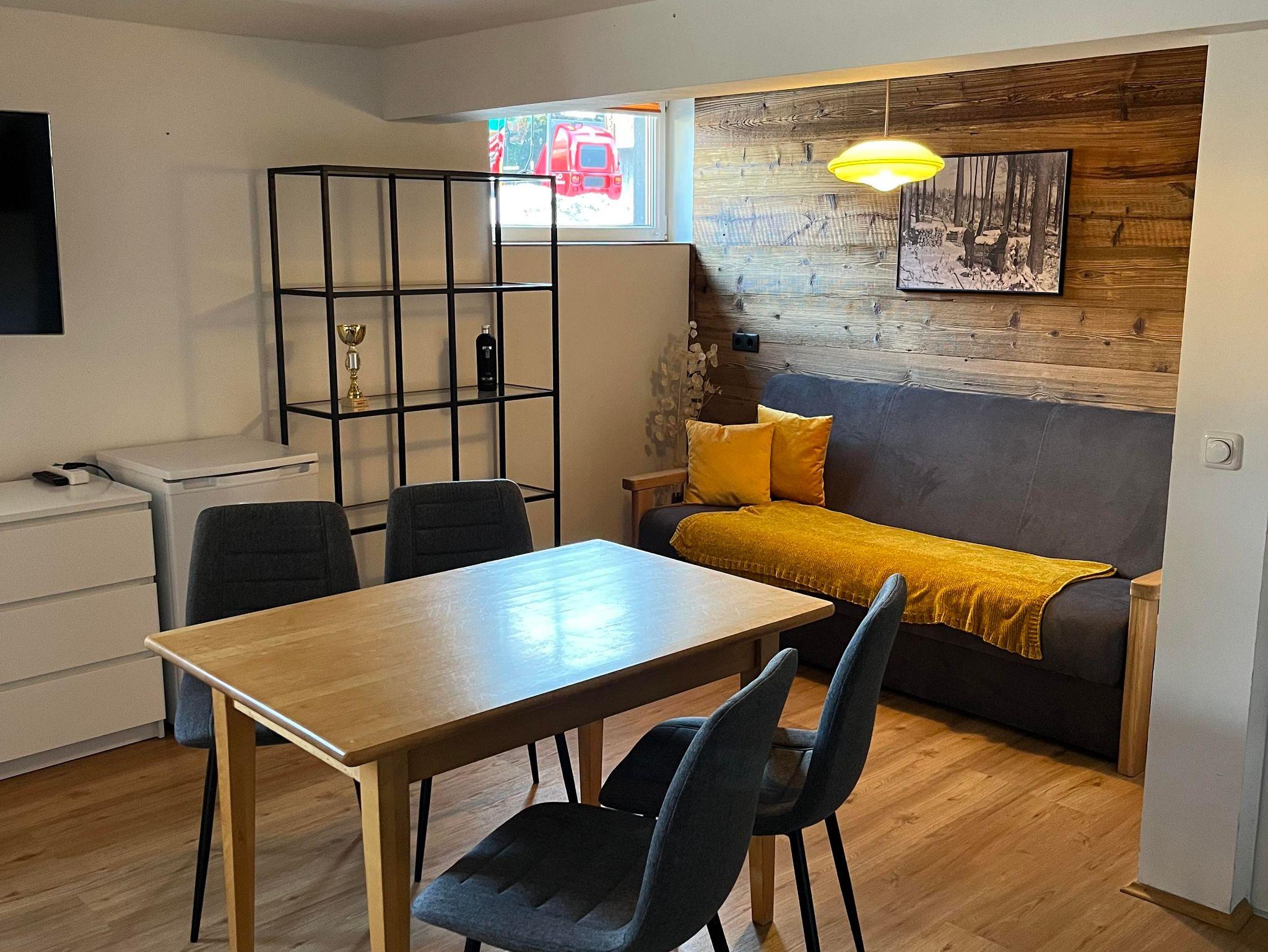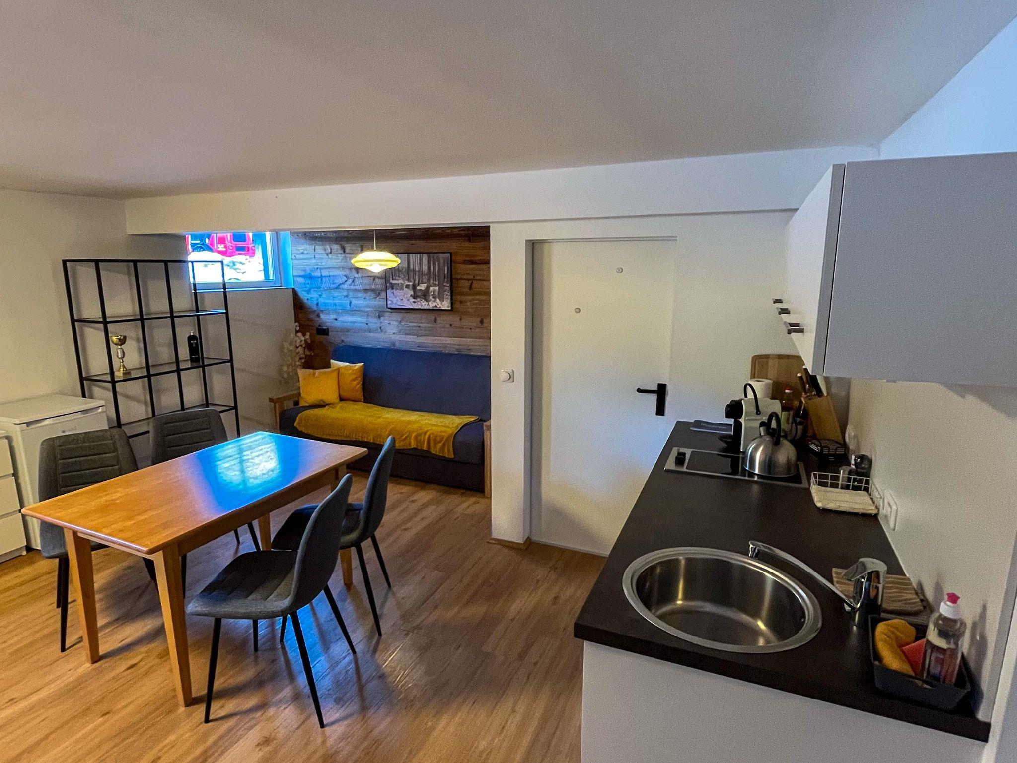 Das Appartment befindet sich im Untergeschoss, bietet dennoch einen direkten Blick auf den Zielhang der Planai. In den Wintermonaten ist es ein gemütlicher, kuscheliger Rückzugsort – im Sommer sorgt die Tieflage für kühle Temperaturen nach einem heißen Wandertag am Berg. Die Unterkunft verfügt über eine kleine, voll ausgestattete Küchenzeile, einen Kühlschrank, einen Essbereich, ein französisches Doppelbett und einen großen Kleiderschrank für ausreichend Stauraum. Im Badezimmer befindet sich eine geräumige Walk-in Dusche, sowie eine Toilette und ein Pissoir. Ski und Snowboards können gegenüber des Appartments in einem abgesperrten Bereich sicher verwahrt werden.