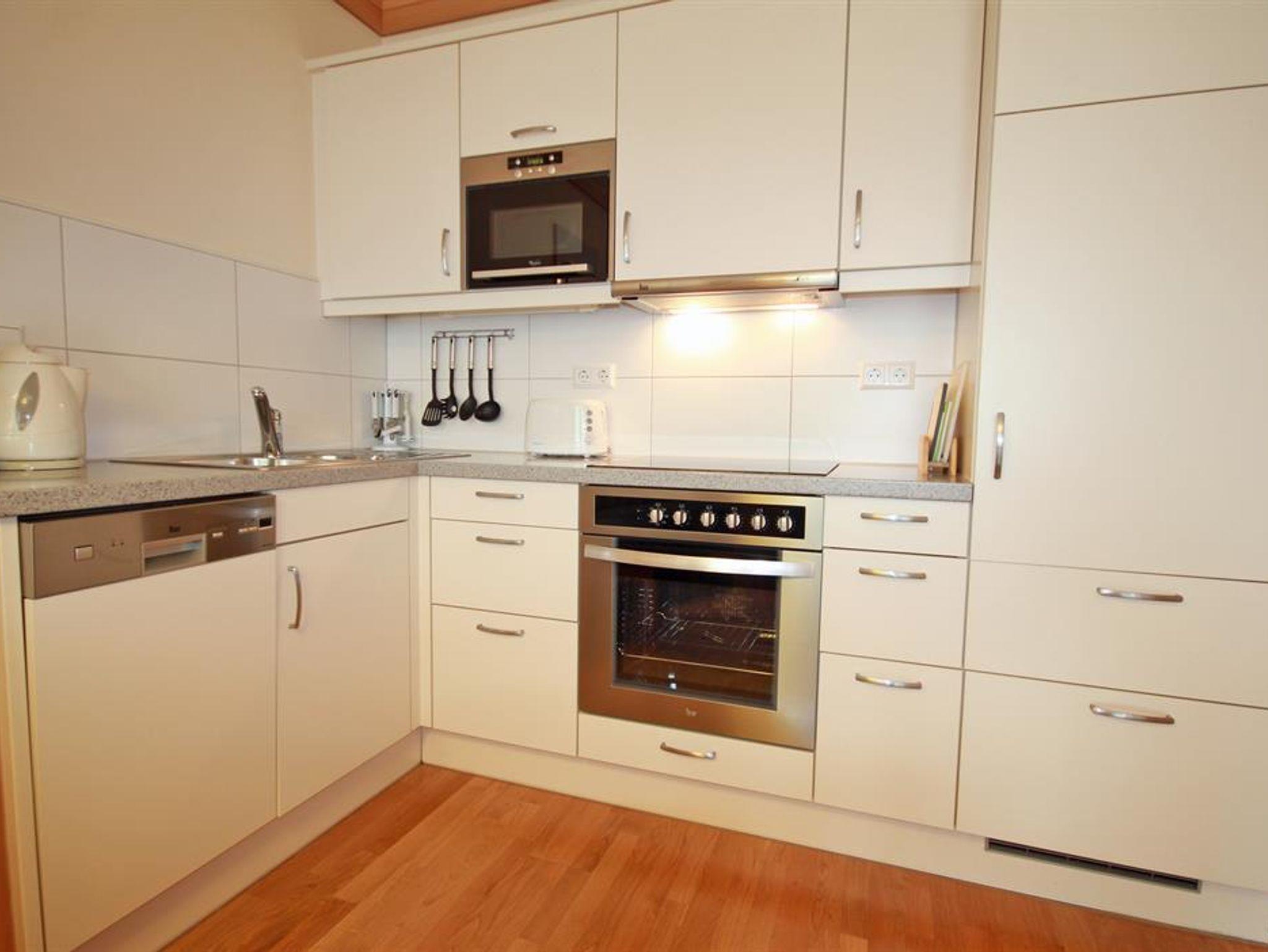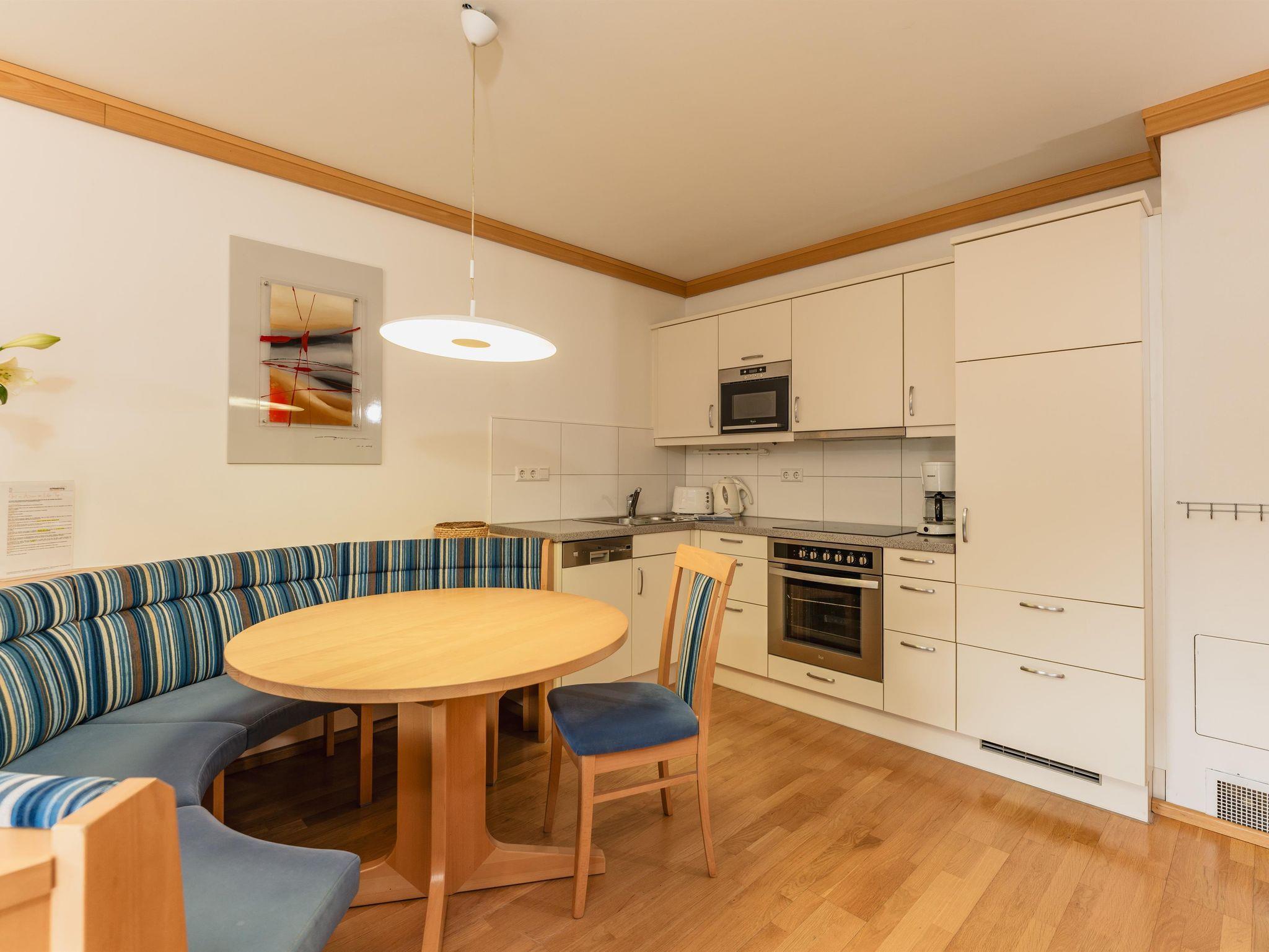 Weitere Annehmlichkeiten wie ein Garagenparkplatz pro Appartement, kostenfreies Wlan, Kabel-TV, ein Lift im Haus sowie ein Fahrrad- und Skiraum mit Skischuhtrockner runden den perfekten Urlaub ab.