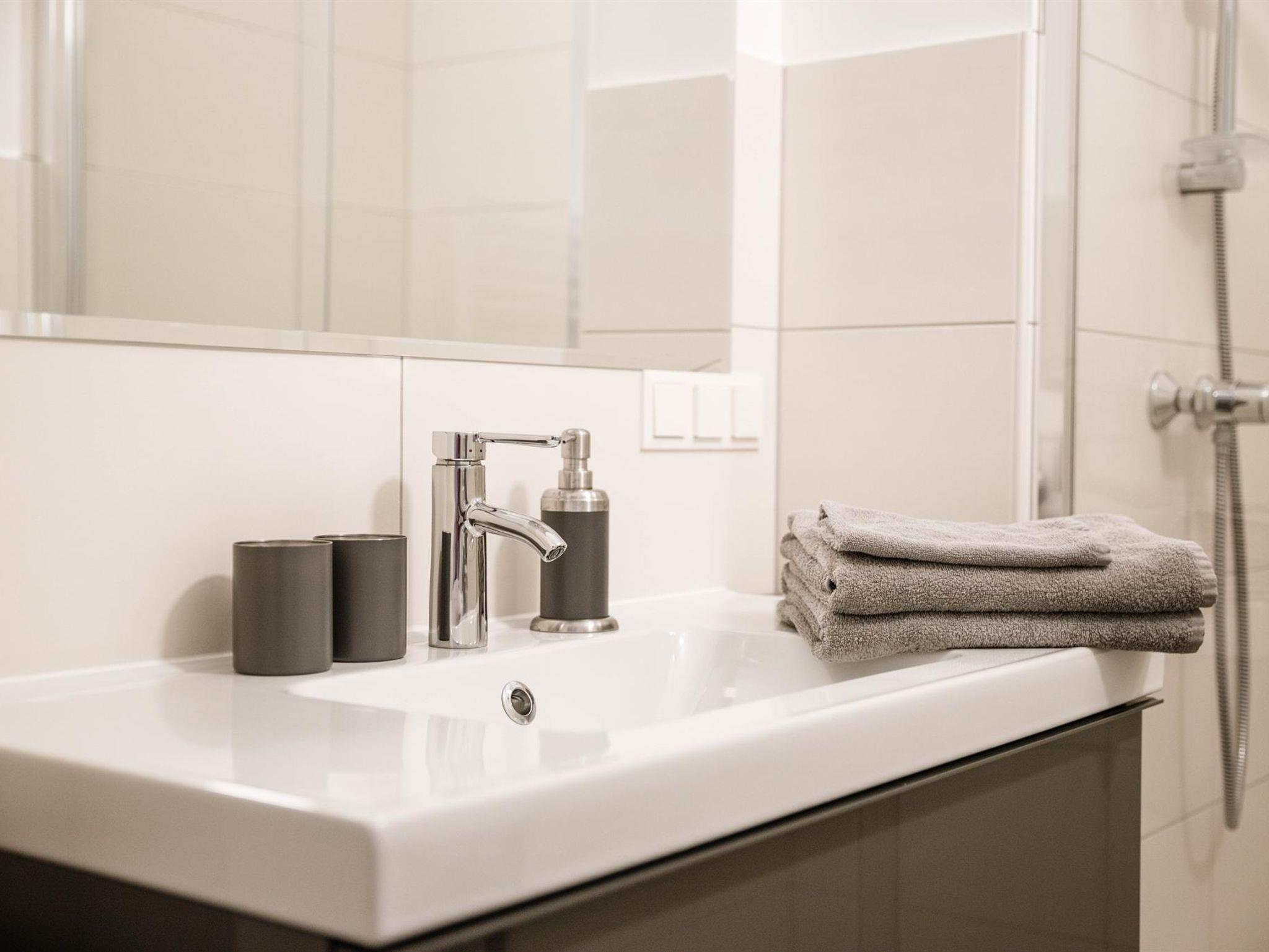 Zeitgemäßes Design, helle Farben, ein Holzboden und eine moderne Ausstattung mit allem was das Herz begehrt machen die Appartements Freiraum zum gemütlichen Refugium mit eigener Terrasse.