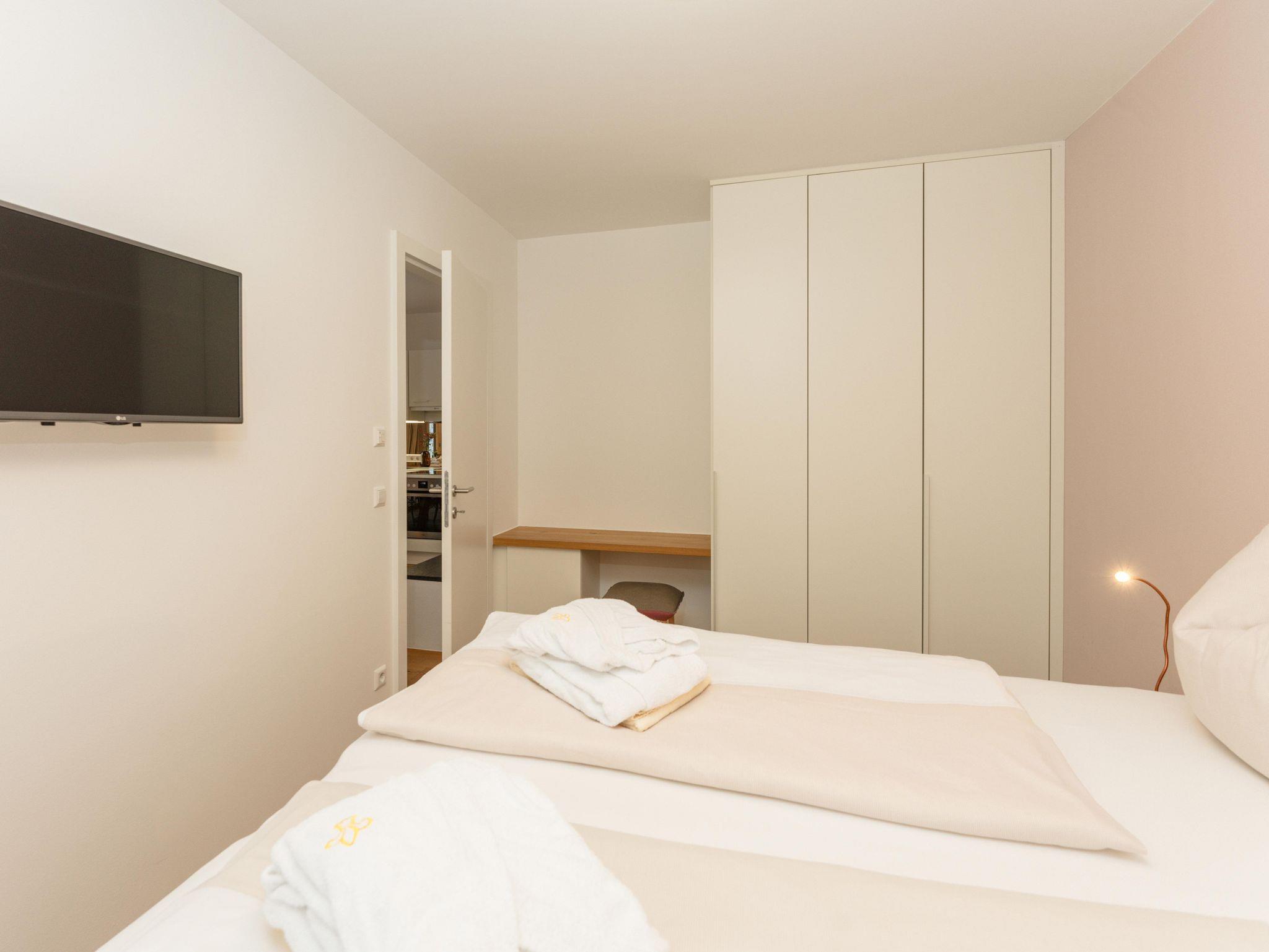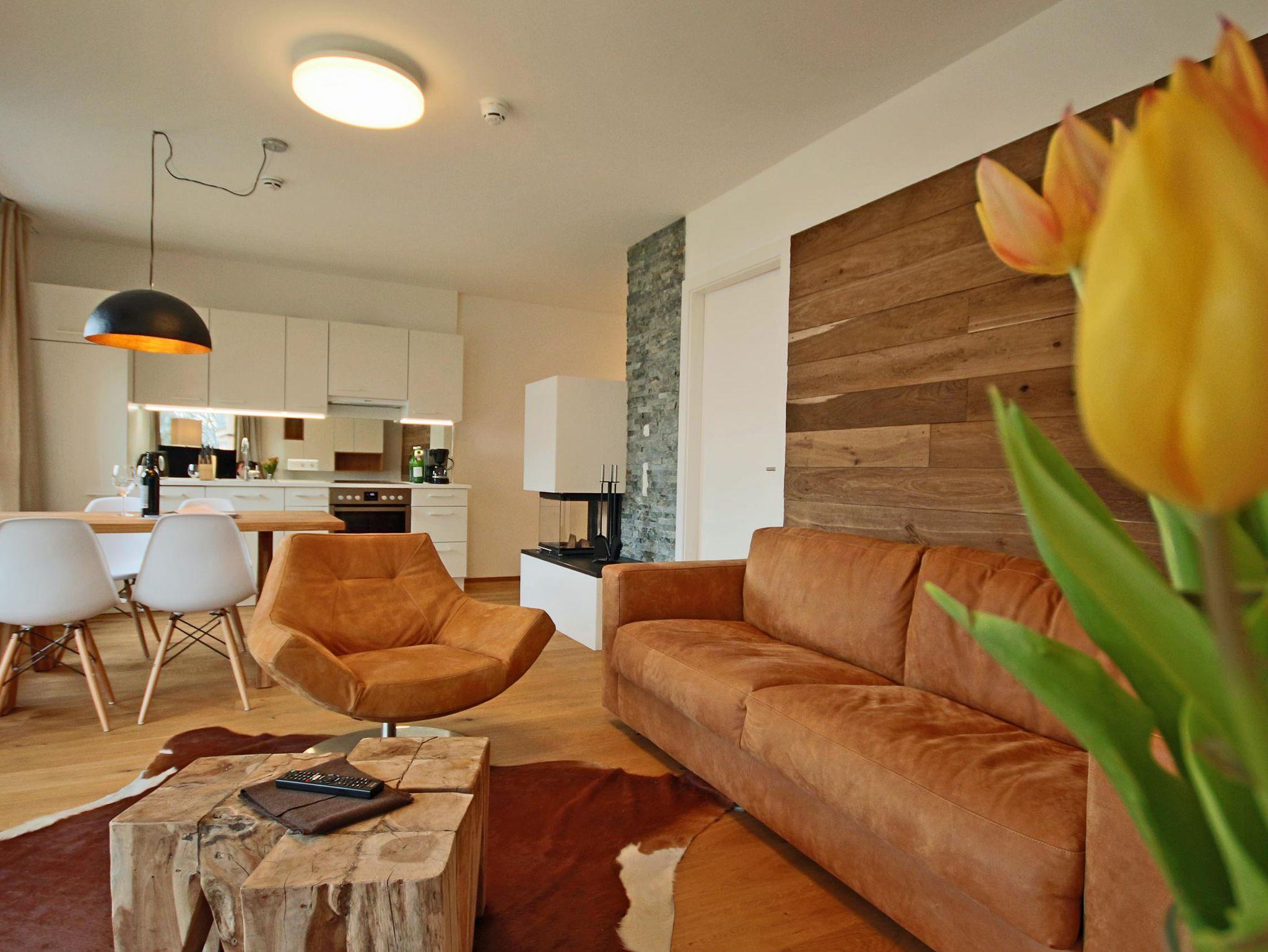 3 miteinander verbunden Häuser 38 servicierte Appartements, von 40m² Studios, Appartements mit einem, zwei oder drei Schlafzimmern bis hin zu 130m² Penthäusern, herrlichen Ausblick und Top Ausstattung inklusive! Die hochwertige Grundausstattung der Appartements mit heimischen Materialen wie Holz, Stein und Glas vermitteln ein modernes Wohlfühlambiente mit viel Licht und Aussicht, - eine Symbiose aus purem Lebensgefühl und Kraftplatz an der Sonne. Komplett ausgestattete Designküchen, großzügige Wohnräume zum Teil mit offenem Kamin, moderne & stylische Möbel, kostenfreies WLAN, Kabel TV in allen Schlaf- und Wohnräumen sowie moderne und lichtdurchflutete Badezimmer, lassen für den Gast, der seine private Freiheit schätzt, keine Wünsche offen .