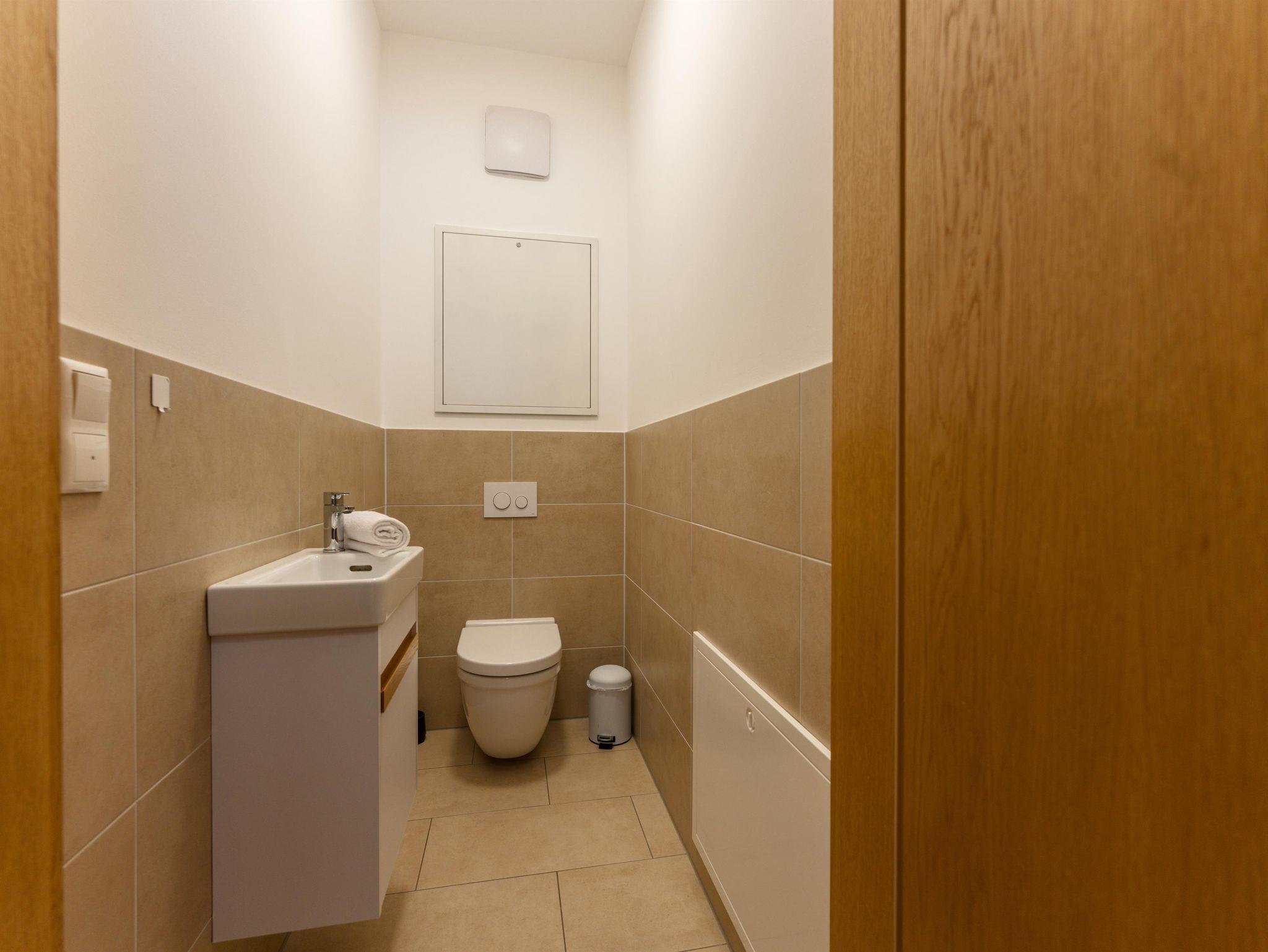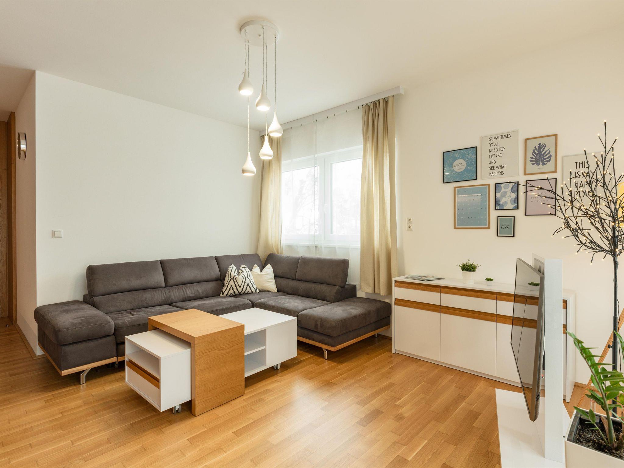 Top 2: 60 m² App. im Erdgeschoss für 2-4 Personen, voll ausgestattete Wohnküche mit Esstisch, Schlafsofa für 2 Personen und TV, 40 m² Terrasse mit Lounge- und Gartenmöbel, ein separates Schlafzimmer mit Doppelbett und TV, ein Badezimmer mit Dusche, eine separate Toilette, 1x Tiefgaragenparkplatz.