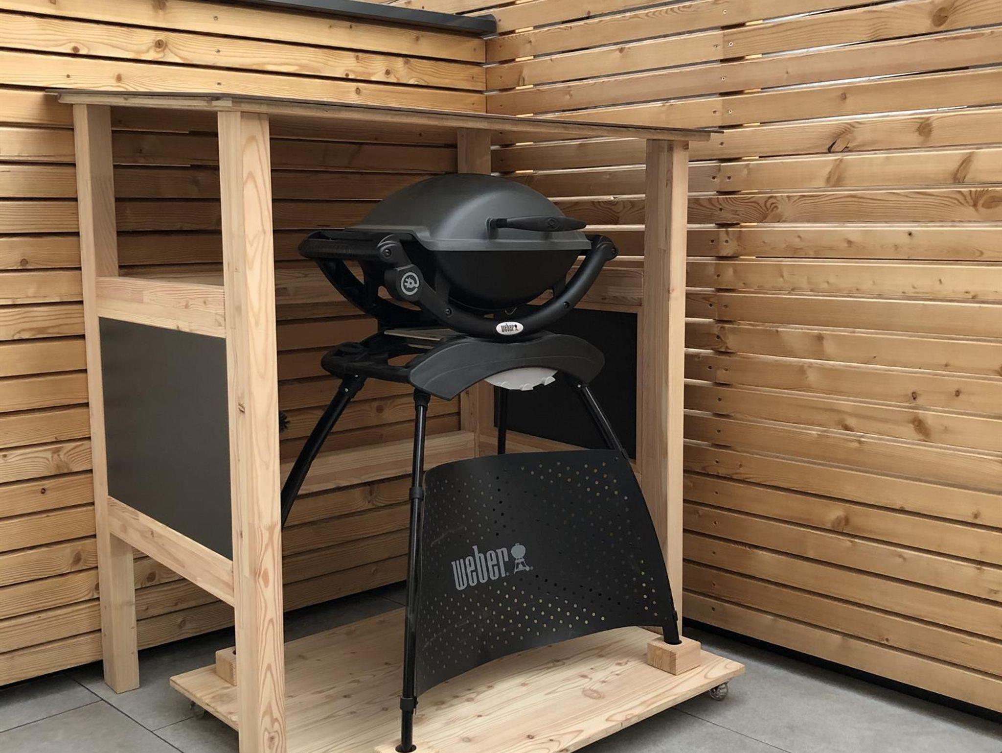 Weber Elektro-Grill auf der Terrasse vorhanden