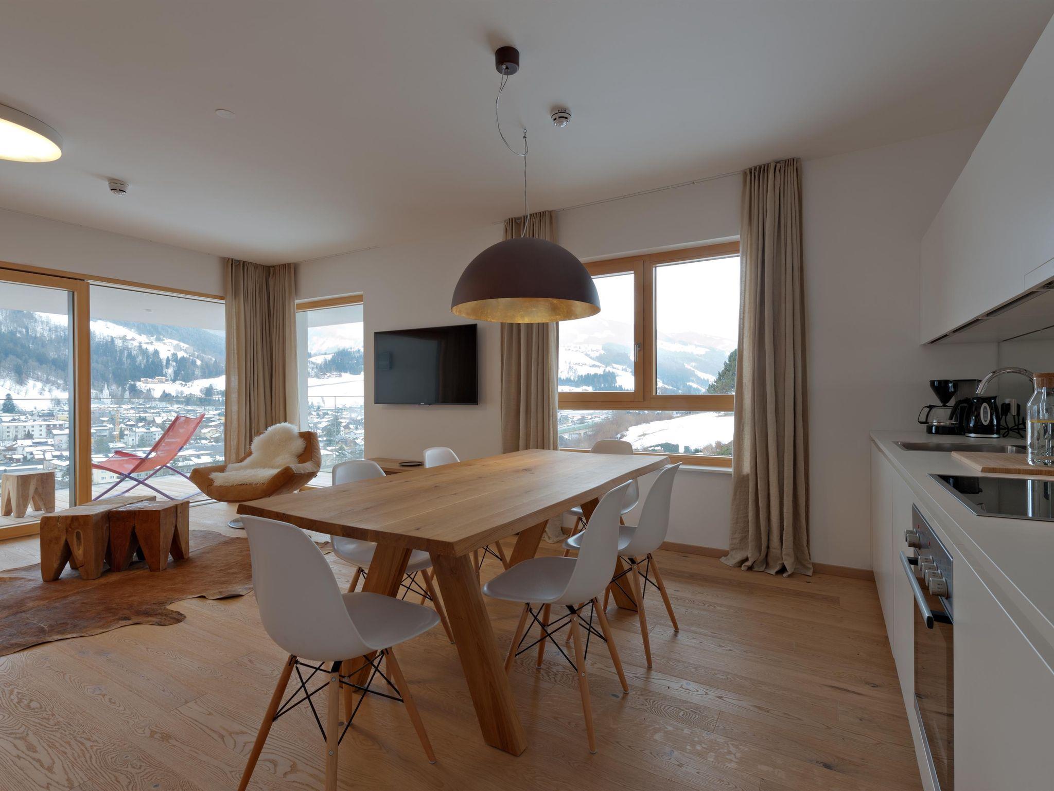 3 miteinander verbunden Häuser 38 servicierte Appartements, von 40m² Studios, Appartements mit einem, zwei oder drei Schlafzimmern bis hin zu 130m² Penthäusern, herrlichen Ausblick und Top Ausstattung inklusive! Die hochwertige Grundausstattung der Appartements mit heimischen Materialen wie Holz, Stein und Glas vermitteln ein modernes Wohlfühlambiente mit viel Licht und Aussicht, - eine Symbiose aus purem Lebensgefühl und Kraftplatz an der Sonne. Komplett ausgestattete Designküchen, großzügige Wohnräume zum Teil mit offenem Kamin, moderne & stylische Möbel, kostenfreies WLAN, Kabel TV in allen Schlaf- und Wohnräumen sowie moderne und lichtdurchflutete Badezimmer, lassen für den Gast, der seine private Freiheit schätzt, keine Wünsche offen .