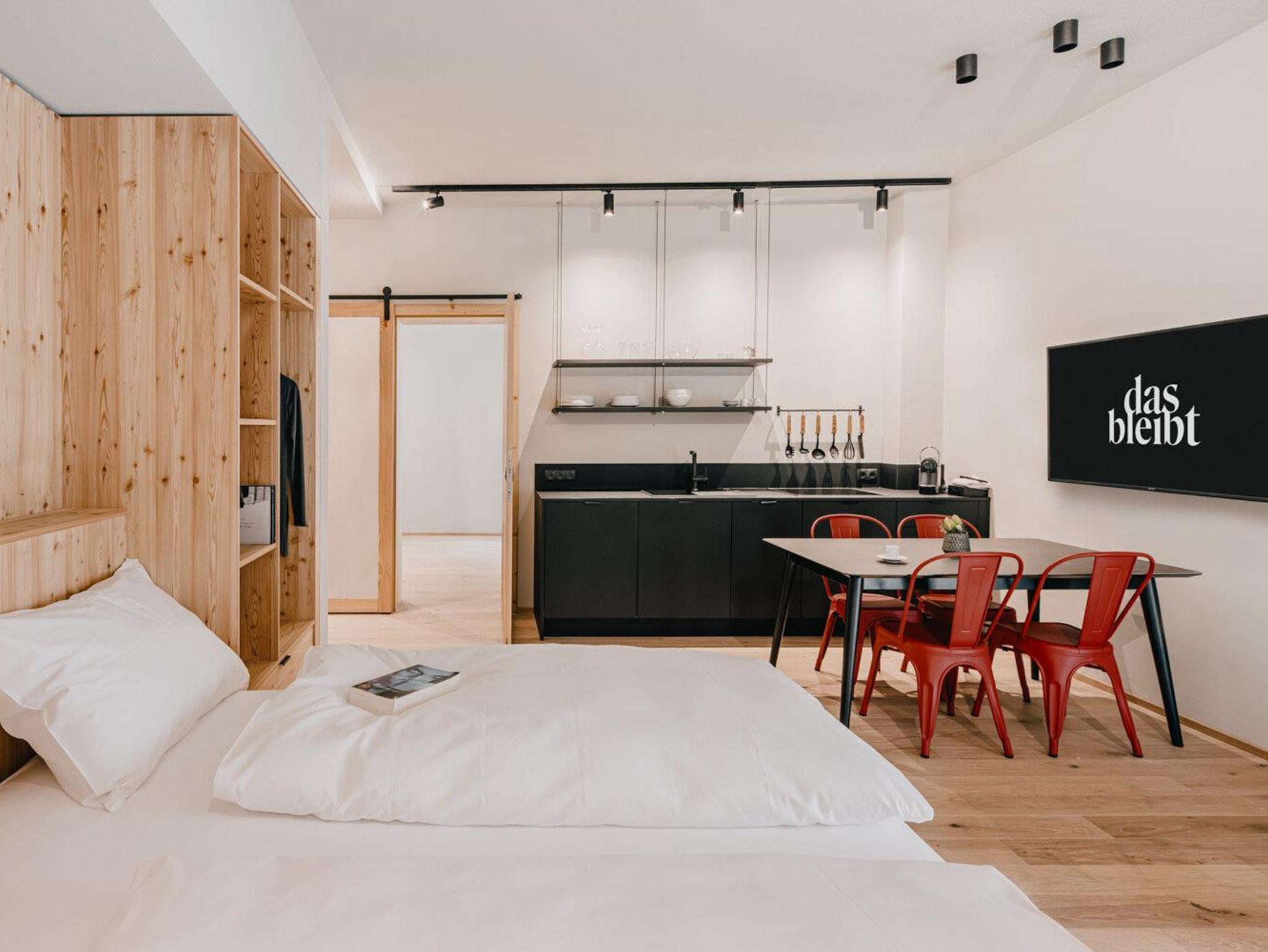Unser Comfort Studio ist ein echter Geheimtipp für smarte Urlauber. Das liegt nicht nur am gemütlichen Wohn- und Schlafbereich mit Doppelbett und allen Annehmlichkeiten von Flat- Screen bis WiFi, sondern auch an der geräumigen Loggia mit Sauna, auf der man zum einen gut sitzen, zum anderen aber auch echt gut schwitzen kann.