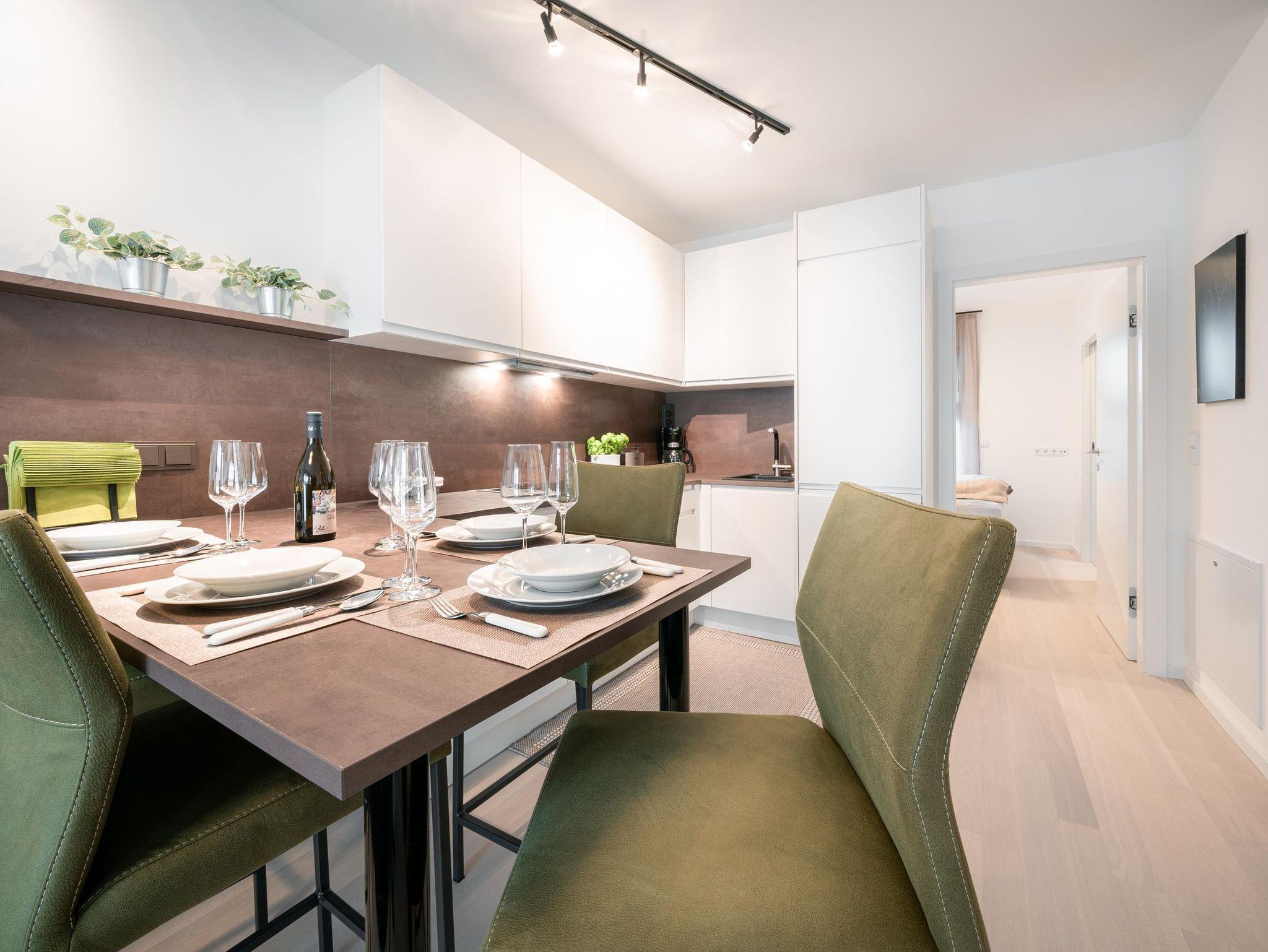 11 Appartements – von Garden, Studio, Comfort, Superior und Penthouse – jedes mit Balkon oder Terrasse, jedes ruhig, ein bis zwei Schlafzimmer, komplett ausgestattete Küchen, Tiefgarage, Skiraum, Radraum, W-Lan… das ist der Conrad – Komfort!