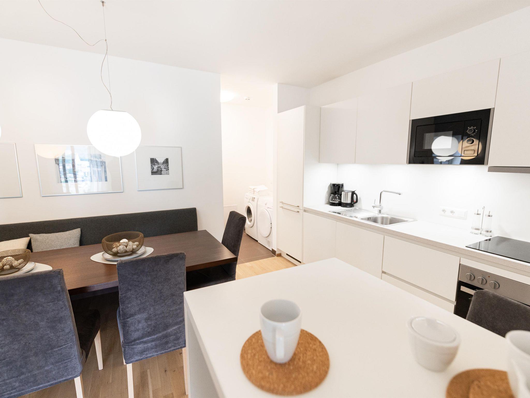 3 miteinander verbunden Häuser 38 servicierte Appartements, von 40m² Studios, Appartements mit einem, zwei oder drei Schlafzimmern bis hin zu 130m² Penthäusern, herrlichen Ausblick und Top Ausstattung inklusive! Die hochwertige Grundausstattung der Appartements mit heimischen Materialen wie Holz, Stein und Glas vermitteln ein modernes Wohlfühlambiente mit viel Licht und Aussicht, - eine Symbiose aus purem Lebensgefühl und Kraftplatz an der Sonne. Komplett ausgestattete Designküchen, großzügige Wohnräume zum Teil mit offenem Kamin, moderne & stylische Möbel, kostenfreies WLAN, Kabel TV in allen Schlaf- und Wohnräumen sowie moderne und lichtdurchflutete Badezimmer, lassen für den Gast, der seine private Freiheit schätzt, keine Wünsche offen .