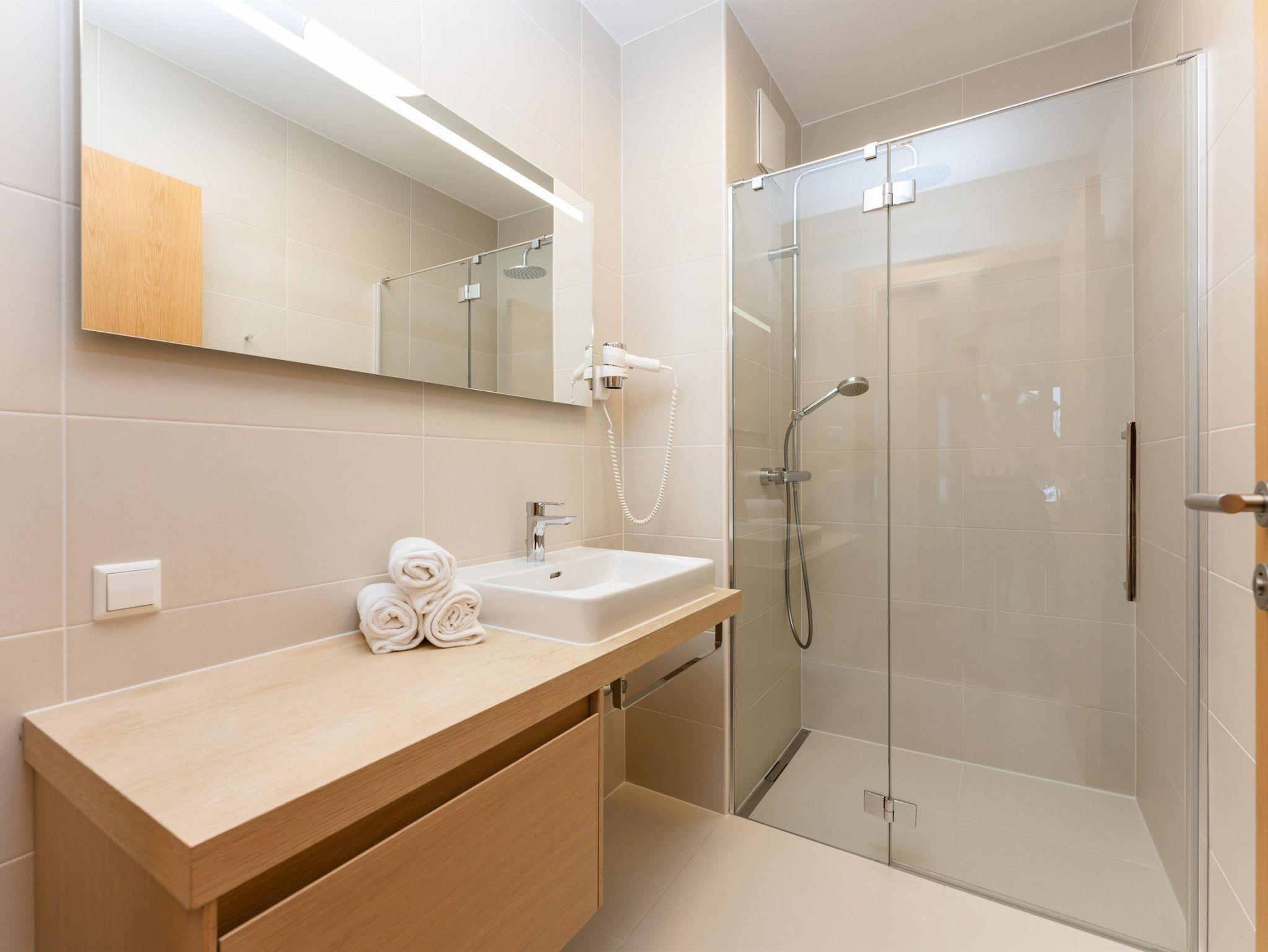 Die Lage ist einmalig. Das Appartment war an sich sauber, jedoch die Dusche war etwas verkalkt. Pool im Haus war super. Der Service auch sehr freundlich und nett.
