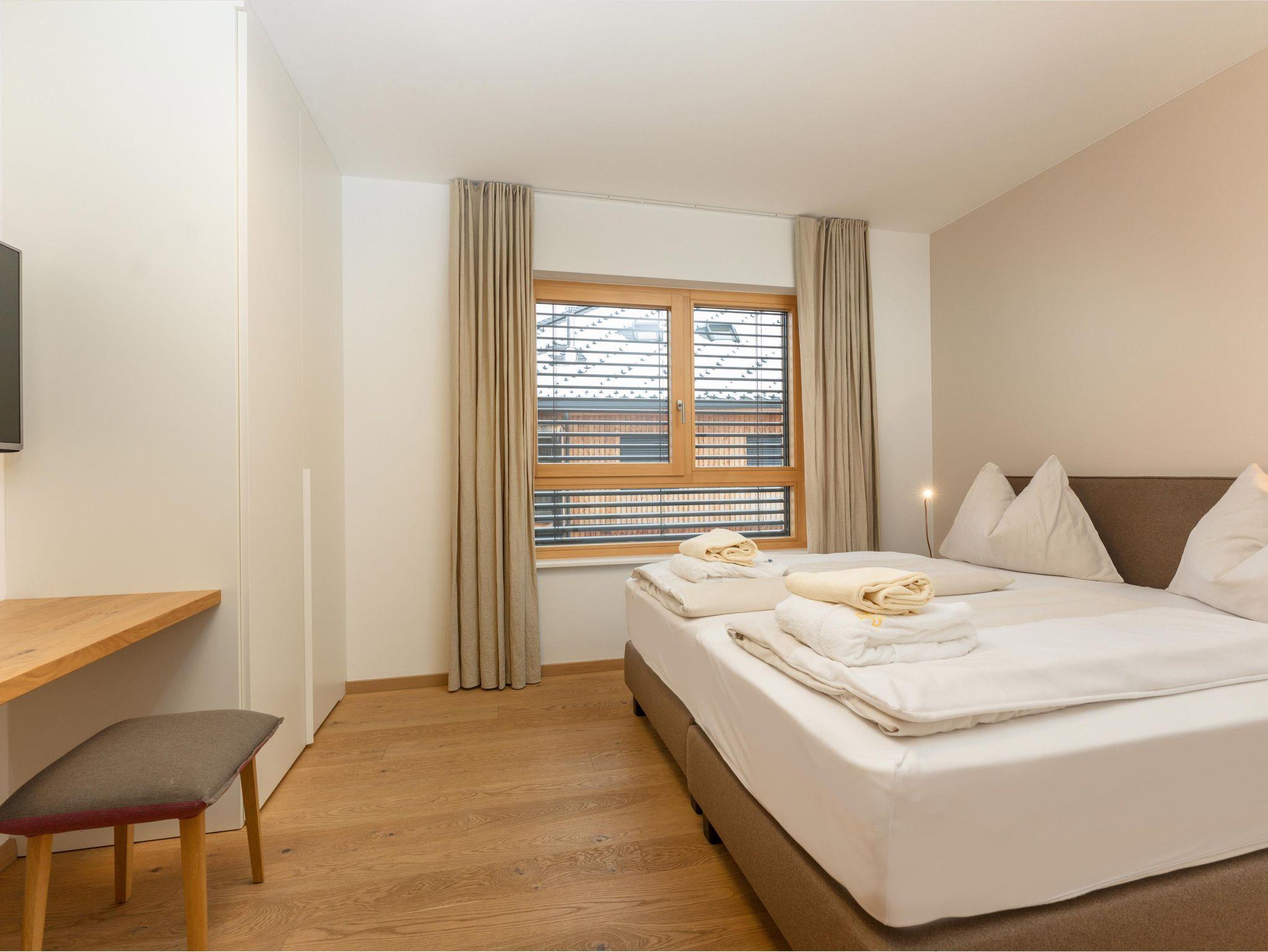 3 miteinander verbunden Häuser 38 servicierte Appartements, von 40m² Studios, Appartements mit einem, zwei oder drei Schlafzimmern bis hin zu 130m² Penthäusern, herrlichen Ausblick und Top Ausstattung inklusive! Die hochwertige Grundausstattung der Appartements mit heimischen Materialen wie Holz, Stein und Glas vermitteln ein modernes Wohlfühlambiente mit viel Licht und Aussicht, - eine Symbiose aus purem Lebensgefühl und Kraftplatz an der Sonne. Komplett ausgestattete Designküchen, großzügige Wohnräume zum Teil mit offenem Kamin, moderne & stylische Möbel, kostenfreies WLAN, Kabel TV in allen Schlaf- und Wohnräumen sowie moderne und lichtdurchflutete Badezimmer, lassen für den Gast, der seine private Freiheit schätzt, keine Wünsche offen .