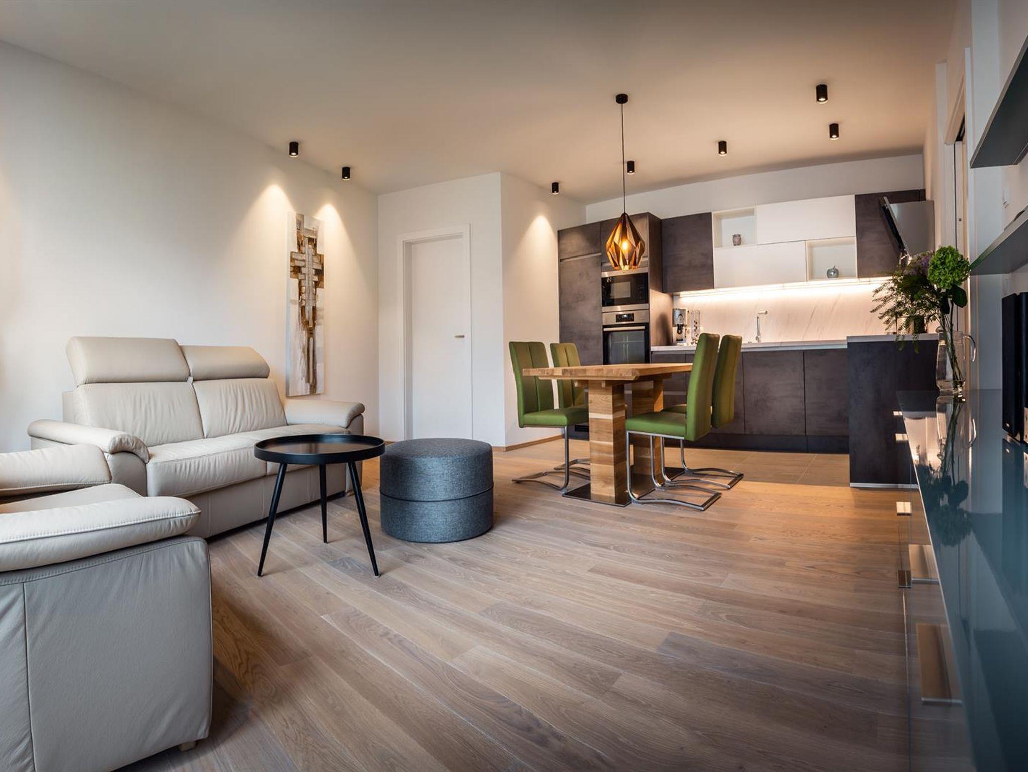 Den Komfort erweitern pro Appartement ein Tiefgaragenparkplatz mit Elektroladestation, ein privater Ski- und Fahrradabstellraum inklusive Skischuhheizung sowie ein Lift im Haus.