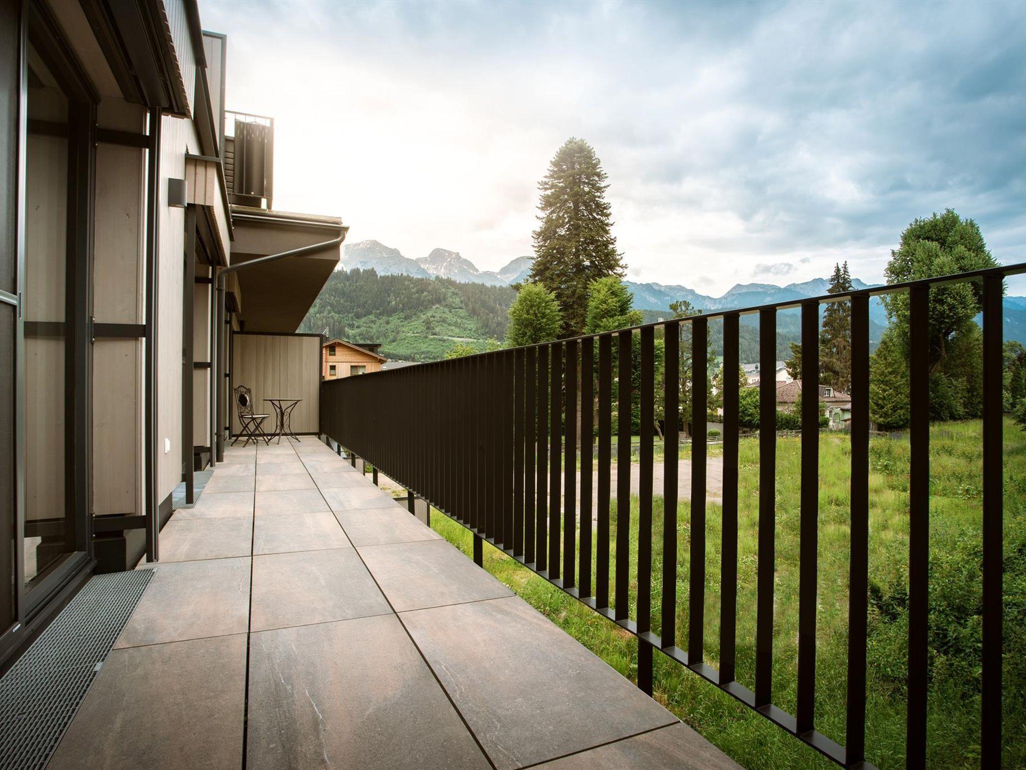 Top 7 - Platz für 6 Personen, großzügiger Wohnraum mit voll ausgestatteter Küche, Essbereich, gemütliches Sofa mit TV (auch Schlafsofa für 2 Personen), zwei separate Schlafzimmer, 1x mit Doppelbett und 1x mit Stockbett (beide 120*200), ein Badezimmer mit Regendusche sowie eine separate Toilette. Vom östlichen Sonnenbalkon haben Sie wunderbare Ausblicke auf das Dachsteingebirge.