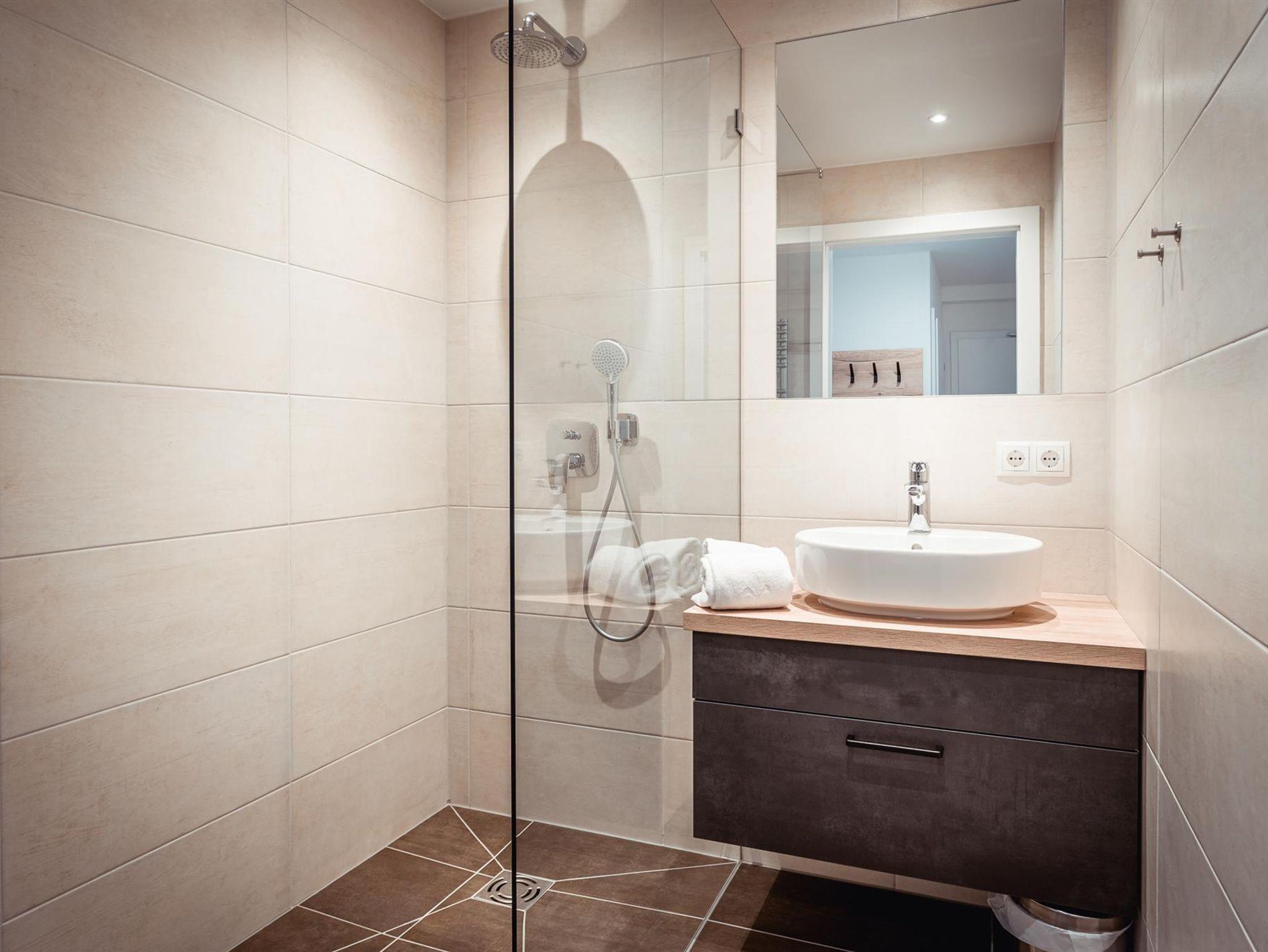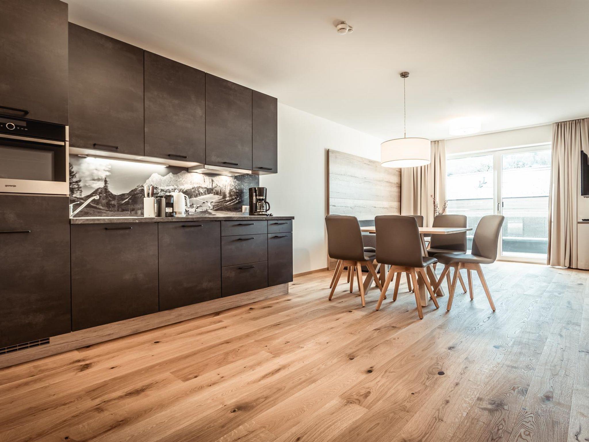 Eben alles was man so braucht. By the way: Das Auto kannst du in der Tiefgarage lassen. Servus im Gustav – 8 Appartements von Smart bis Sky – außerdem mit dabei: Private Sauna im Appartement, eigene Terrasse oder Balkon Top 8 hat keine Balkon, komplett ausgestattete Küchen mit allem PiPaPo, 1-2 Schlafzimmer und Bäder sowie eine Aussicht nach Westen auf die Hochwurzen und das eine oder andere Chi-Chi.