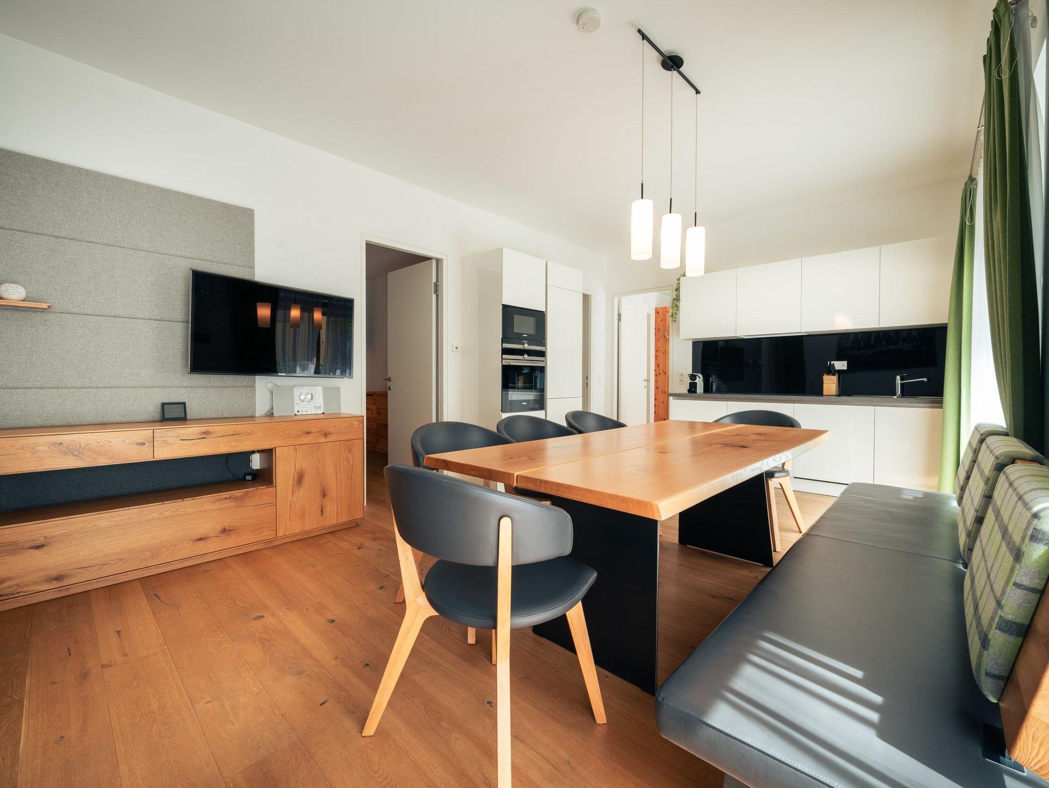 Auf alpinen Traditionen aufbauend eine zeitgeistige Formensprache zu entwickeln, war die Vision des Architekten Hans Posch. 2015 wurde diese Vision in die Tat umgesetzt und im Zentrum von Schladming das Appartementhaus „Hoam - das Chalet in den Alpen“ errichtet. Stücke aus verschiedenen Kontinenten, Epochen, Designstilen und Skulpturen prägen die Appartements, bringen die Räume zum Klingen und erzeugen eine Harmonie mit den Menschen, die hier wohnen. Einzigartig: hier wohnt man hip und traditionsbewusst zugleich. Geboten wird im Appartement TOP 5 für 4-6 Personen auf 57 m² Wohnfläche. Ausgestattet mit einer großzügigen Wohnküche, Loggia, zwei separaten Schlafzimmern sowie einem Badezimmer bietet das Appartement alles, was das Urlauberherz begehrt. Das TOP 2 bietet auf über 100m² genügend Platz für 6-8 Personen. Ausgestattet mit einer großen Wohnküche, 3 separaten Schlafzimmern sowie 3 Bäder En-Suite eine nette Terrasse mit Garten runden das Angebot ab.