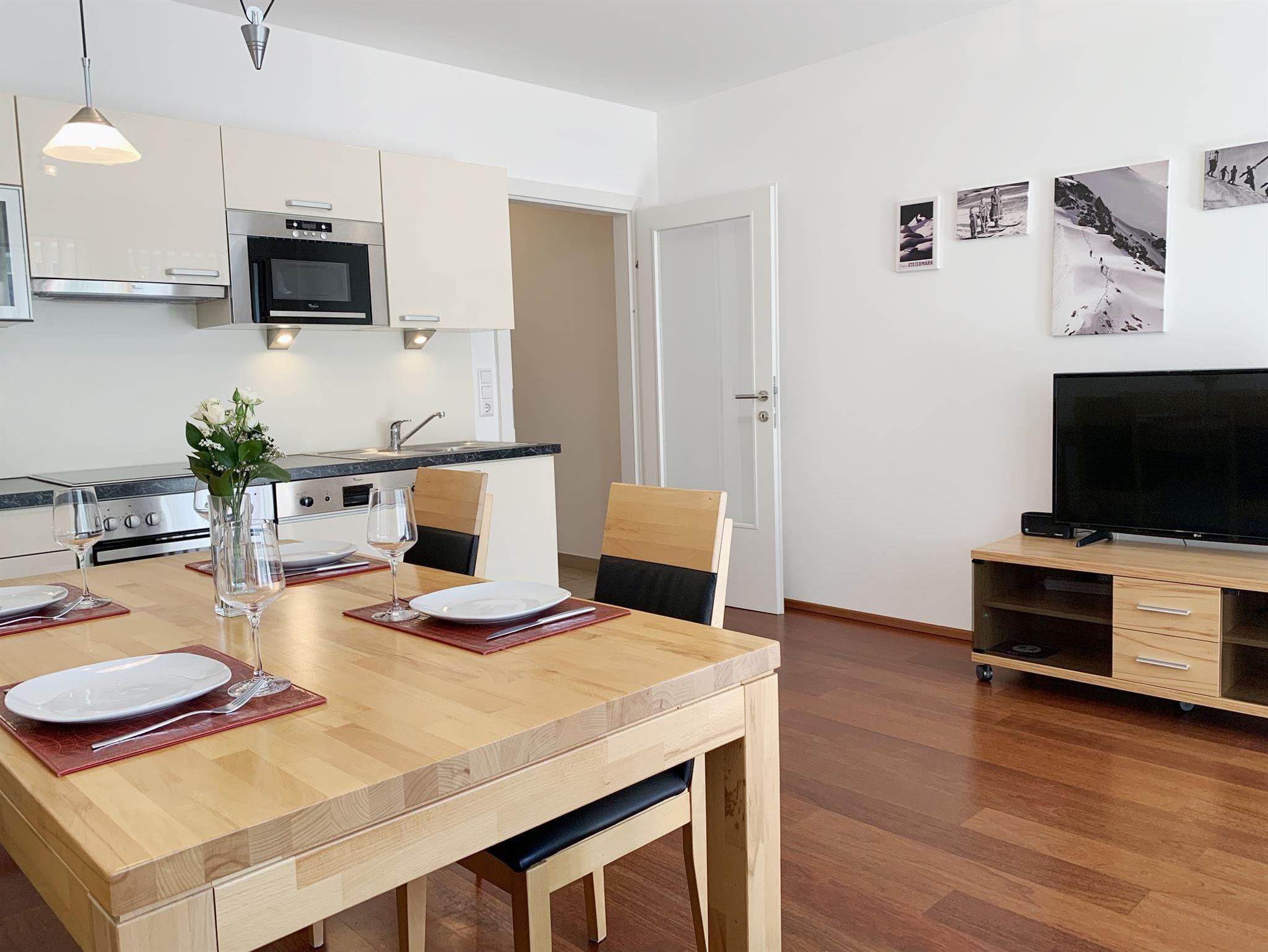 Das Appartement Jana ist sehr geschmackvoll und modern ausgestattet. Auf einer Wohnfläche von 50 m² verteilen sich ein großzügiger Wohnraum mit voll ausgestatteter Küche, Sofa mit TV, Balkon mit tollem Blick auf die Hochwurzen und Planai, ein separates Schlafzimmer mit Doppelbett und Doppelschlafsofa und ein Badezimmer mit Dusche. Gelegen ist das Appartement im 1. Stock des Appartementhauses und insgesamt finden 6 Personen Platz. Ein eigener Skiabstellraum sowie ein Parkplatz im Carport direkt vor dem Haus runden das Angebot ab. Verbringen Sie im App. Jana einen tollen Sommer- wie Winterurlaub – gerne Autofrei.