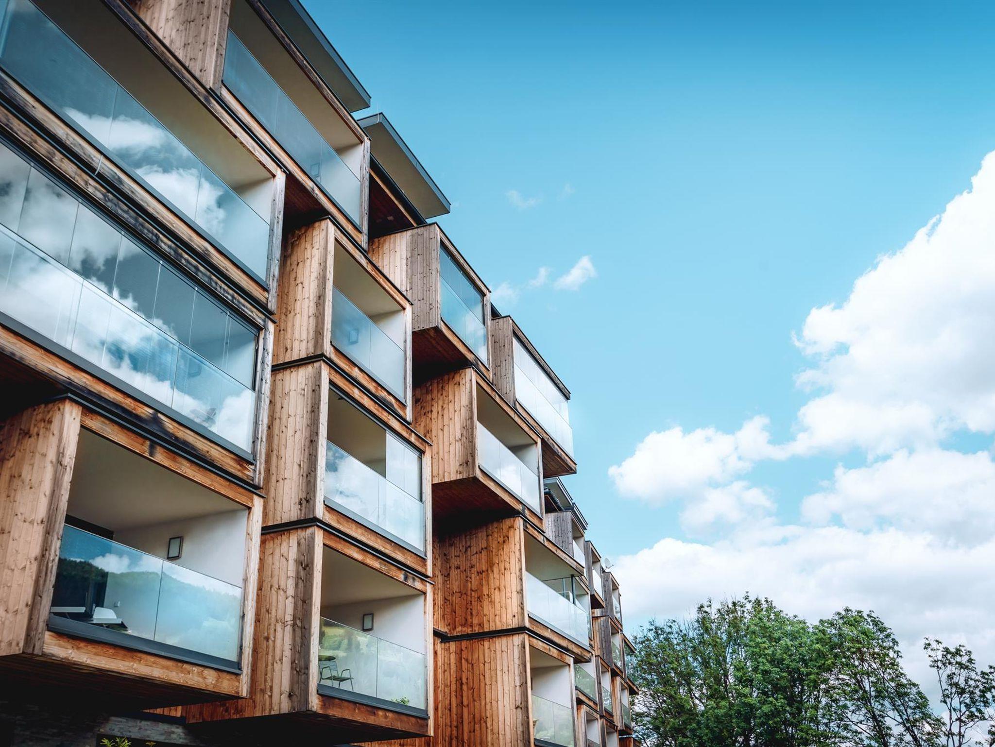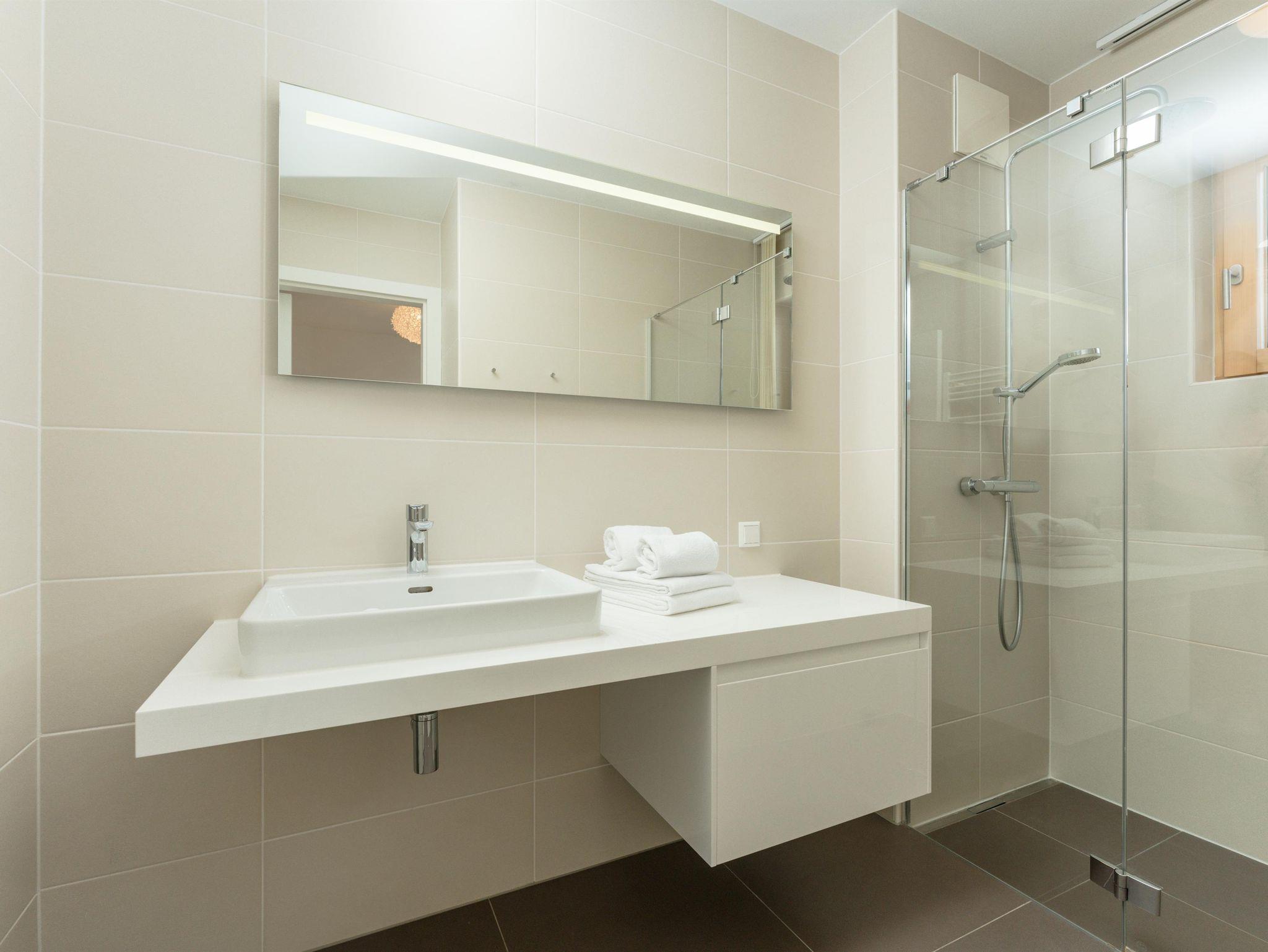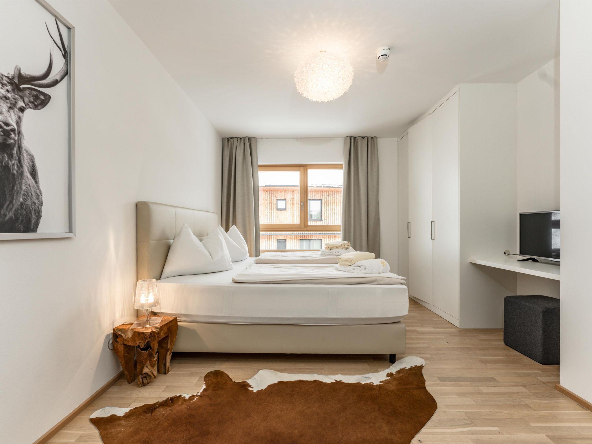 3 miteinander verbunden Häuser 38 servicierte Appartements, von 40m² Studios, Appartements mit einem, zwei oder drei Schlafzimmern bis hin zu 130m² Penthäusern, herrlichen Ausblick und Top Ausstattung inklusive! Die hochwertige Grundausstattung der Appartements mit heimischen Materialen wie Holz, Stein und Glas vermitteln ein modernes Wohlfühlambiente mit viel Licht und Aussicht, - eine Symbiose aus purem Lebensgefühl und Kraftplatz an der Sonne. Komplett ausgestattete Designküchen, großzügige Wohnräume zum Teil mit offenem Kamin, moderne & stylische Möbel, kostenfreies WLAN, Kabel TV in allen Schlaf- und Wohnräumen sowie moderne und lichtdurchflutete Badezimmer, lassen für den Gast, der seine private Freiheit schätzt, keine Wünsche offen .