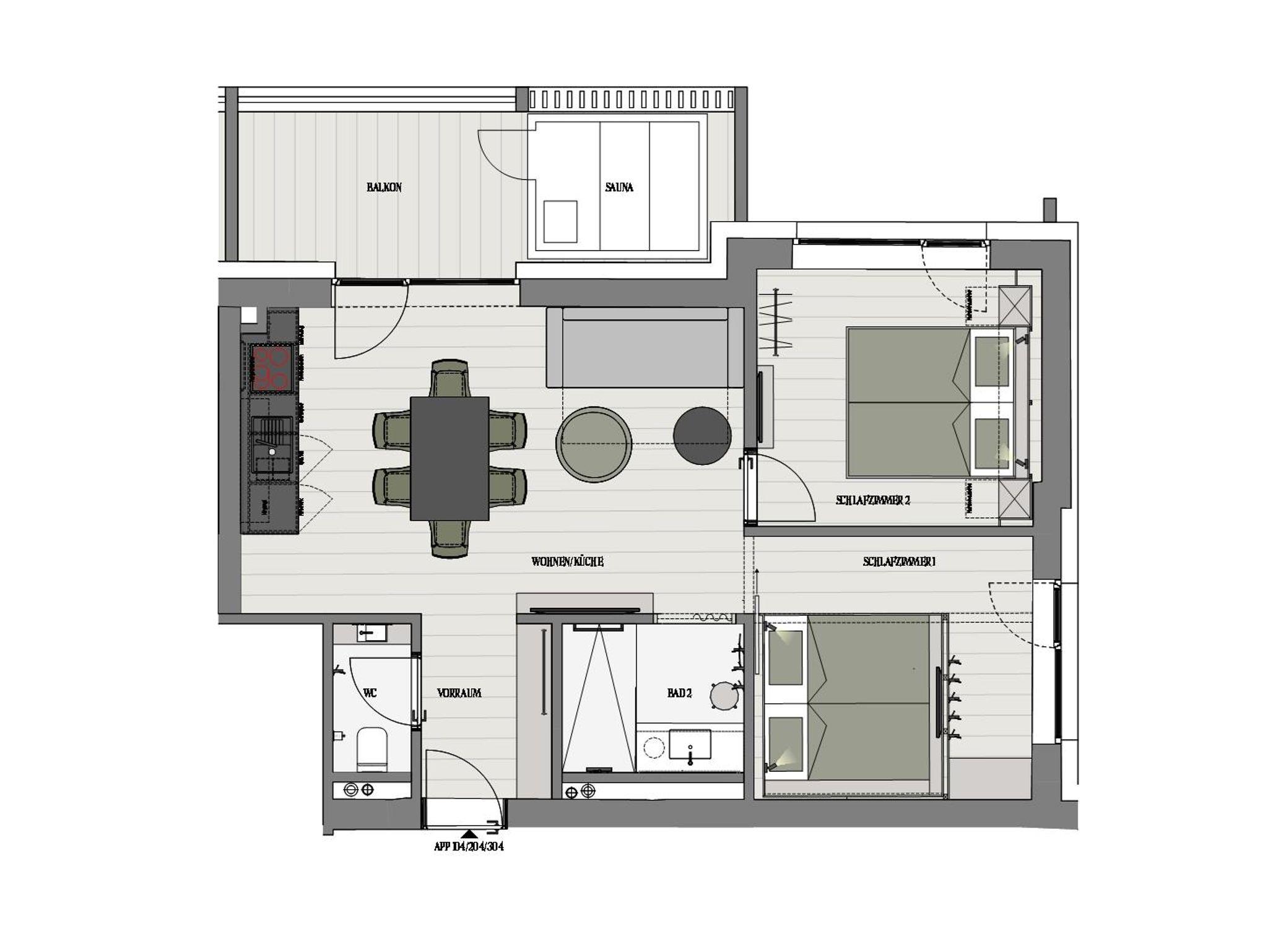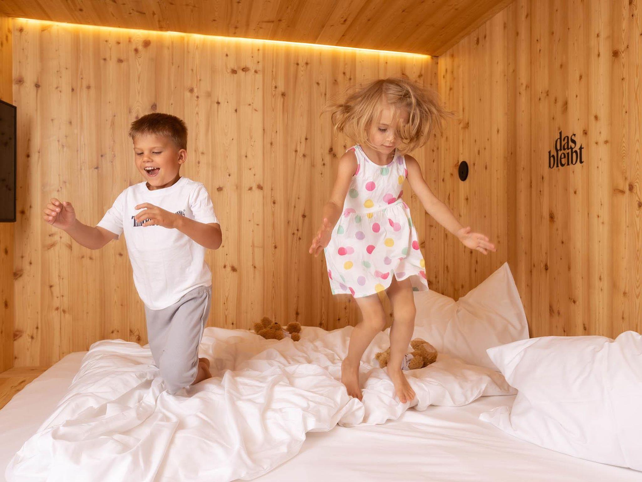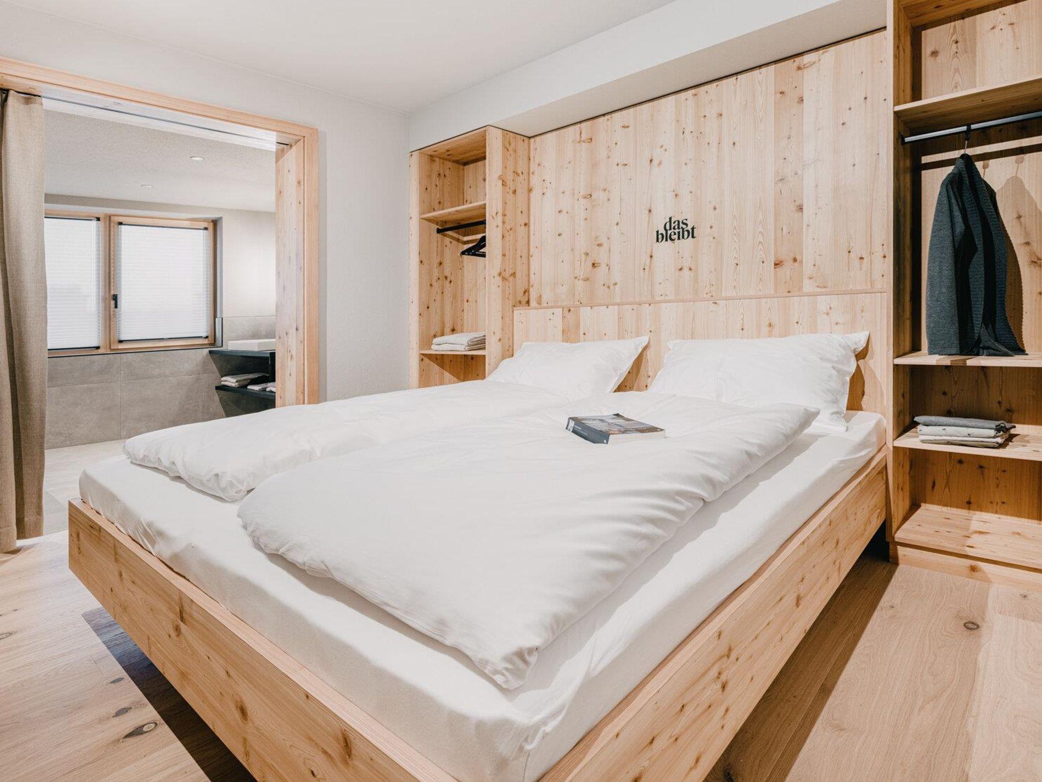 Egal ob ihr frühmorgens raus wollt, um die Pisten und Berge der Region zu entdecken oder euch lieber ins Oversize-Bett kuschelt, um einen gemütlichen Fernseh-Nachmittag zu verbringen – unsere Cosy Suite mit zwei Schlafzimmern und einer geräumigen Wohnküche ist und bleibt die richtige Wahl. Und haben wir schon von der Loggia mit der privaten Zirbensauna erzählt?
