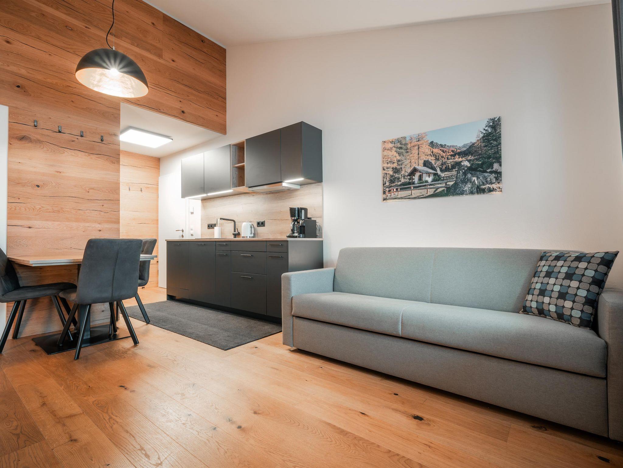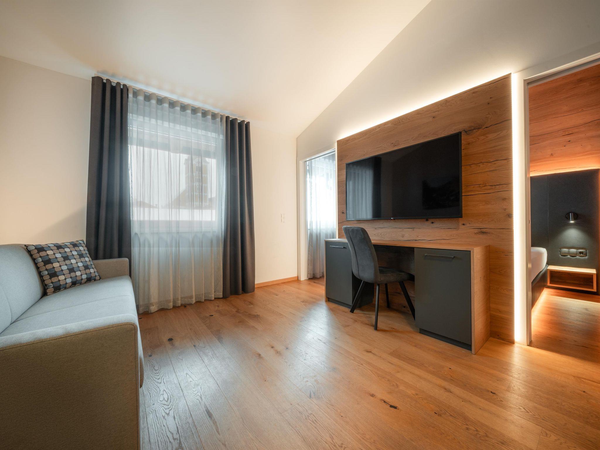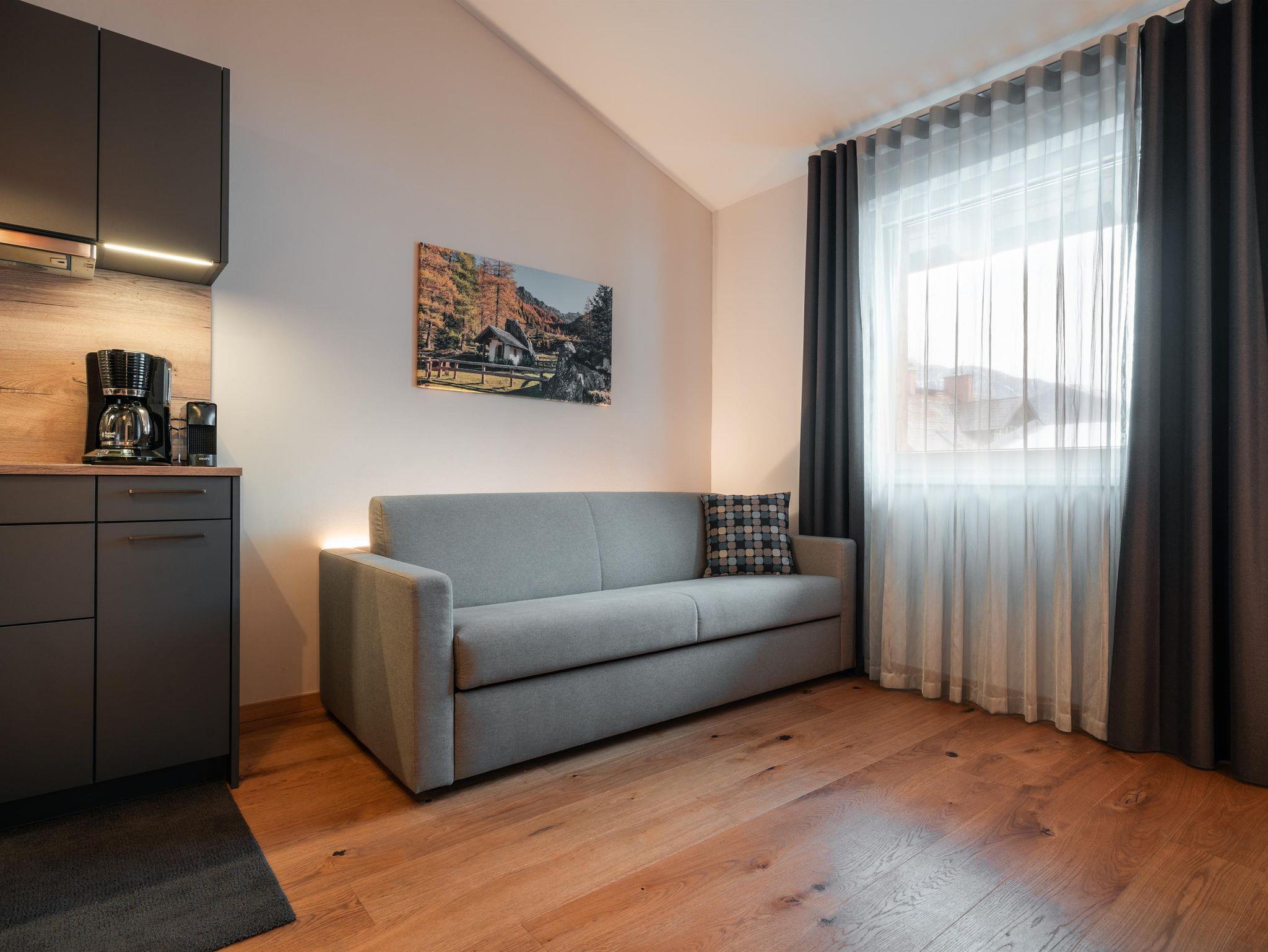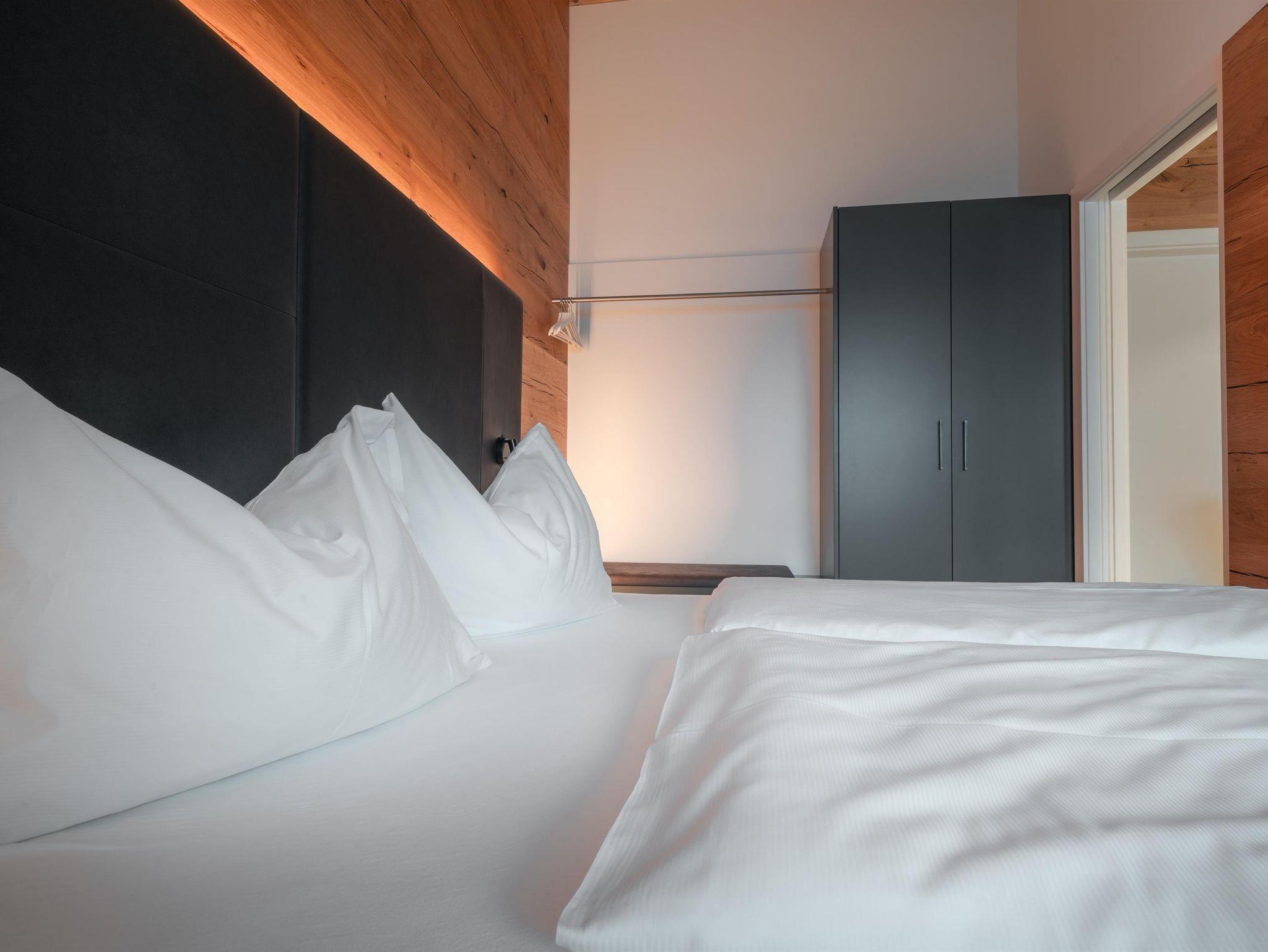 Eben alles was man so braucht. By the way: Das Auto kannst du in der Tiefgarage lassen. Servus im Gustav – 8 Appartements von Smart bis Sky – außerdem mit dabei: Private Sauna im Appartement, eigene Terrasse oder Balkon Top 8 hat keine Balkon, komplett ausgestattete Küchen mit allem PiPaPo, 1-2 Schlafzimmer und Bäder sowie eine Aussicht nach Westen auf die Hochwurzen und das eine oder andere Chi-Chi.