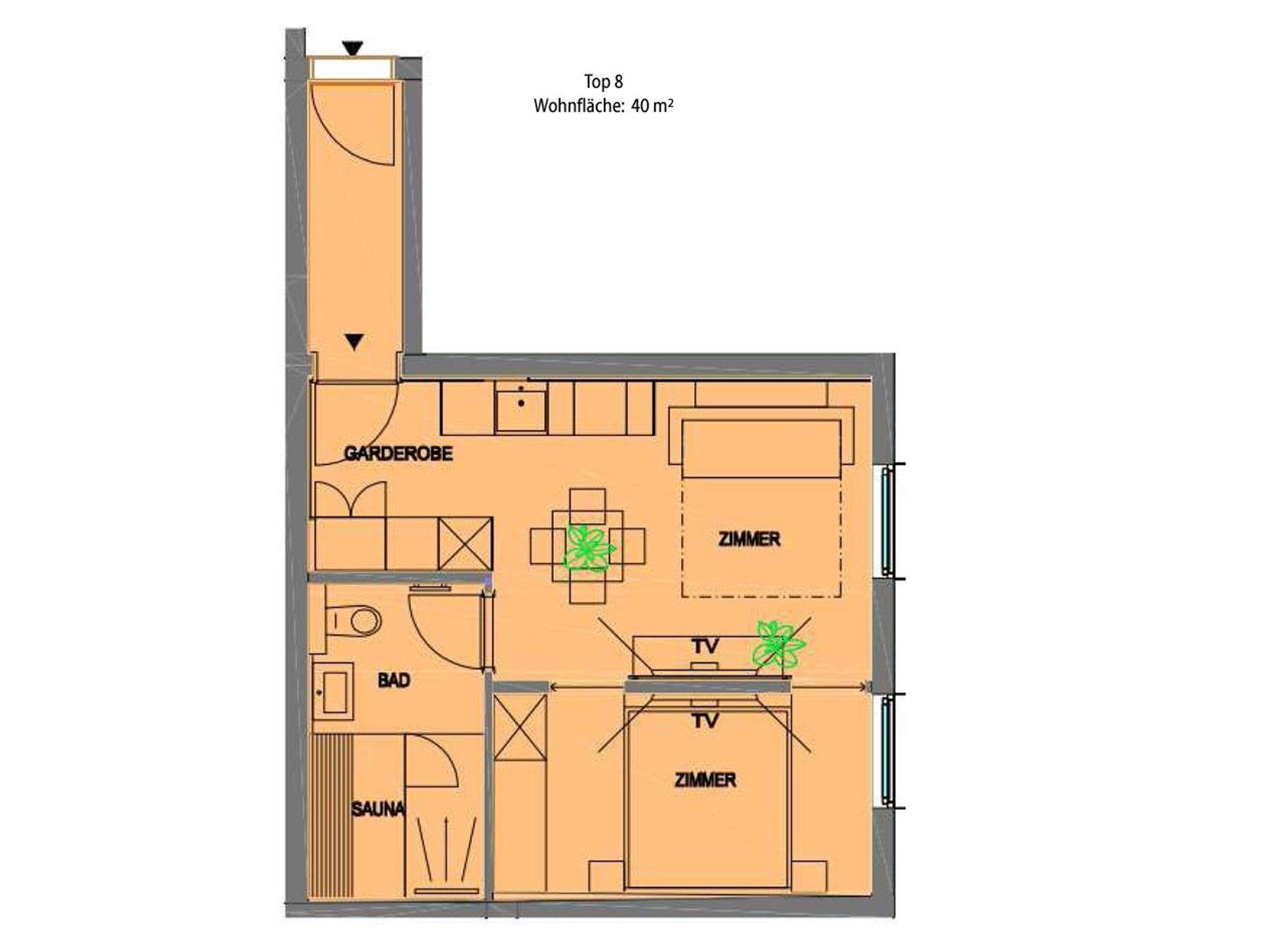 Für 2-4 Personen, 40 m² Wohnfläche, 2. OG