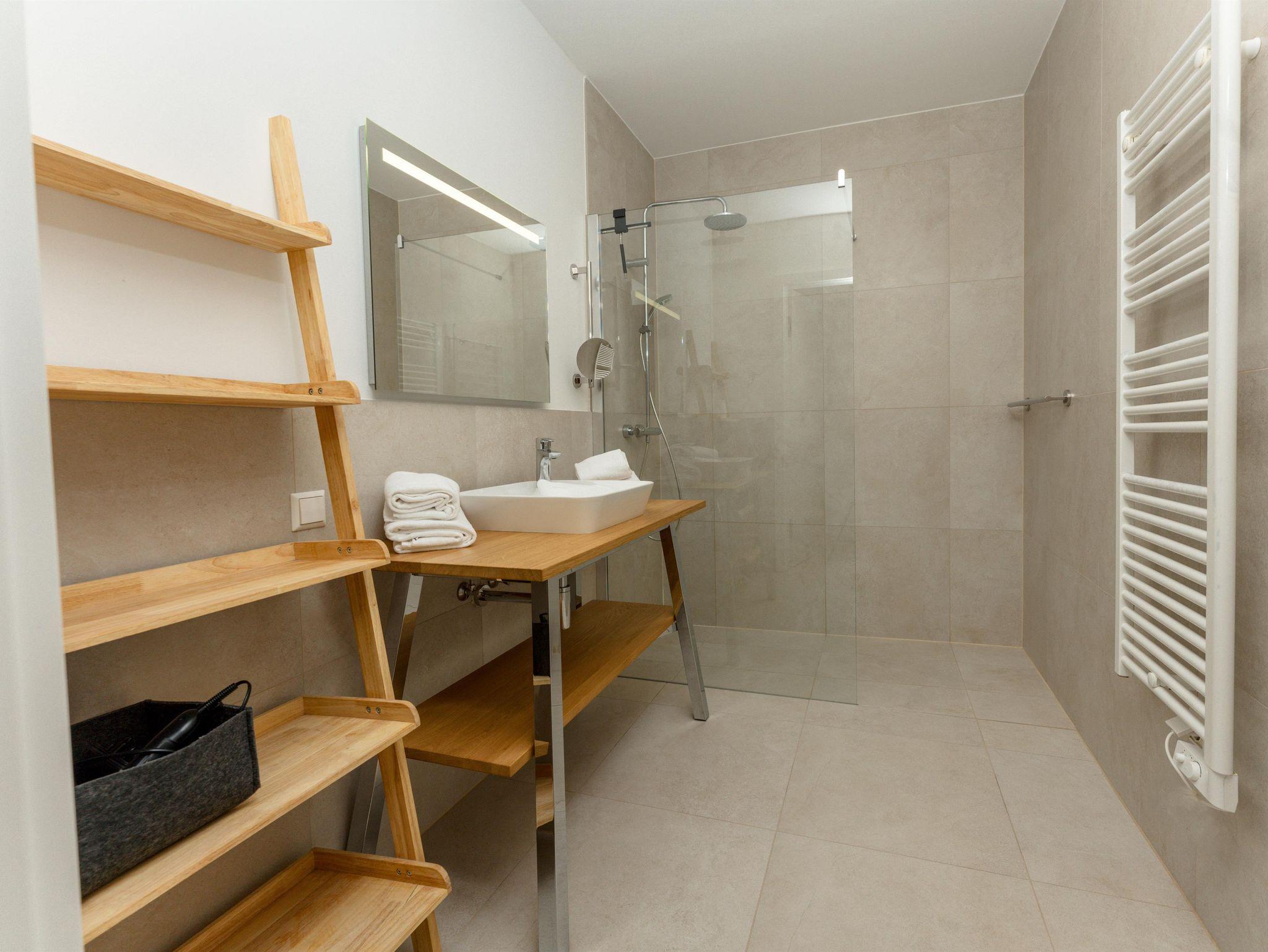 3 miteinander verbunden Häuser 38 servicierte Appartements, von 40m² Studios, Appartements mit einem, zwei oder drei Schlafzimmern bis hin zu 130m² Penthäusern, herrlichen Ausblick und Top Ausstattung inklusive! Die hochwertige Grundausstattung der Appartements mit heimischen Materialen wie Holz, Stein und Glas vermitteln ein modernes Wohlfühlambiente mit viel Licht und Aussicht, - eine Symbiose aus purem Lebensgefühl und Kraftplatz an der Sonne. Komplett ausgestattete Designküchen, großzügige Wohnräume zum Teil mit offenem Kamin, moderne & stylische Möbel, kostenfreies WLAN, Kabel TV in allen Schlaf- und Wohnräumen sowie moderne und lichtdurchflutete Badezimmer, lassen für den Gast, der seine private Freiheit schätzt, keine Wünsche offen .
